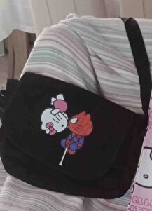 Siyah Örümcek Adam& Hello Kitty Model Desen Baskılı Askılı Postacı Çanta Siyah Örümcek Adam& Hello Kitty Model Desen Baskılı Askılı Postacı Çanta postacıviolon344 تک سایز
