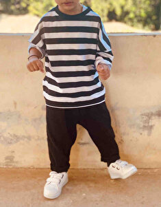 Siyah Vera Dikişli Carrot Pantolon + Siyah Beyaz Çizgili Penye T-shirt Siyah Vera Dikişli Carrot Pantolon + Siyah Beyaz Çizgili Penye T-shirt CTZSIVECASBCT0001 8-9 Yaş
