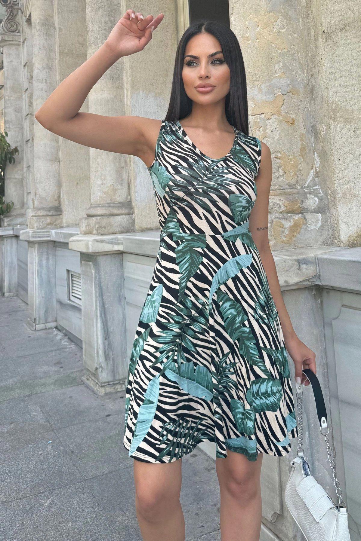 Kadın Yeşil Desenli, Kolsuz, V Yaka, Kolsuz, Midi Kloş Elbise Kadın Yeşil Desenli, Kolsuz, V Yaka, Kolsuz, Midi Kloş Elbise N3244 42