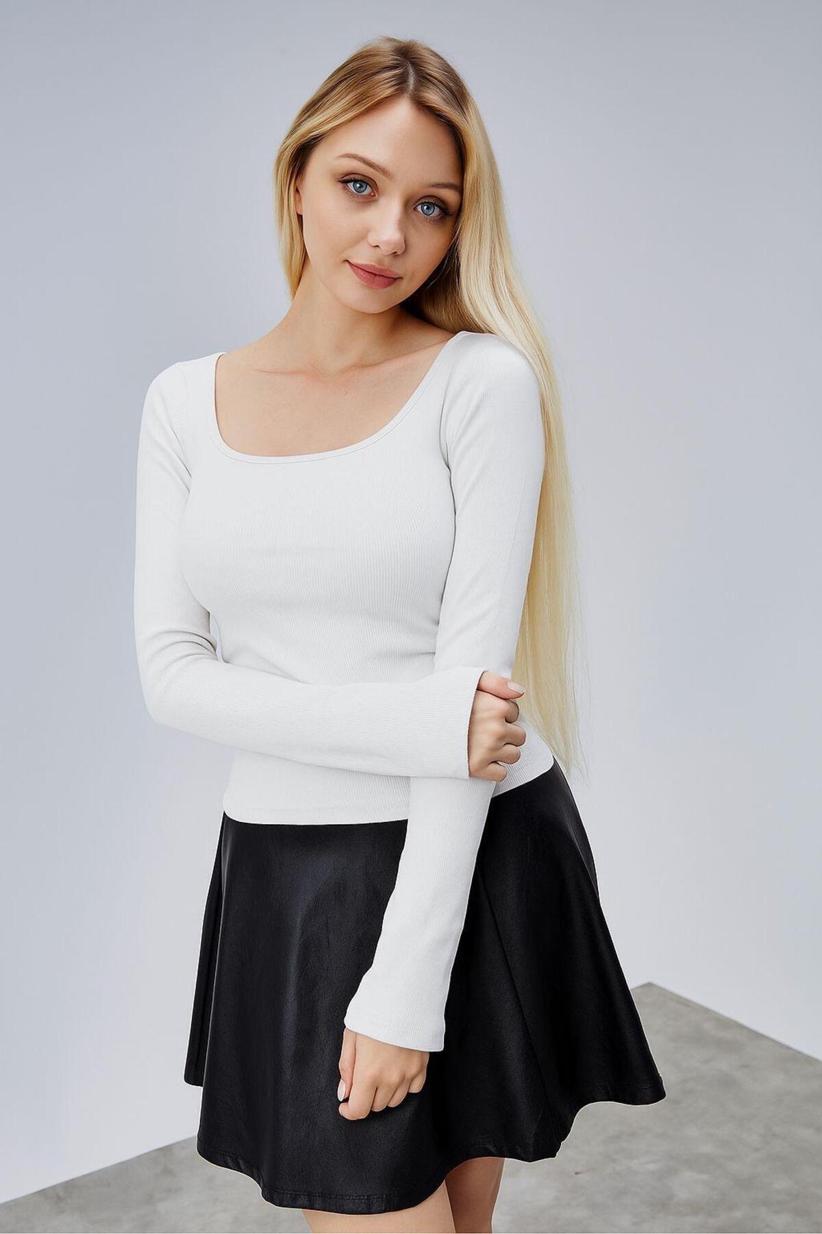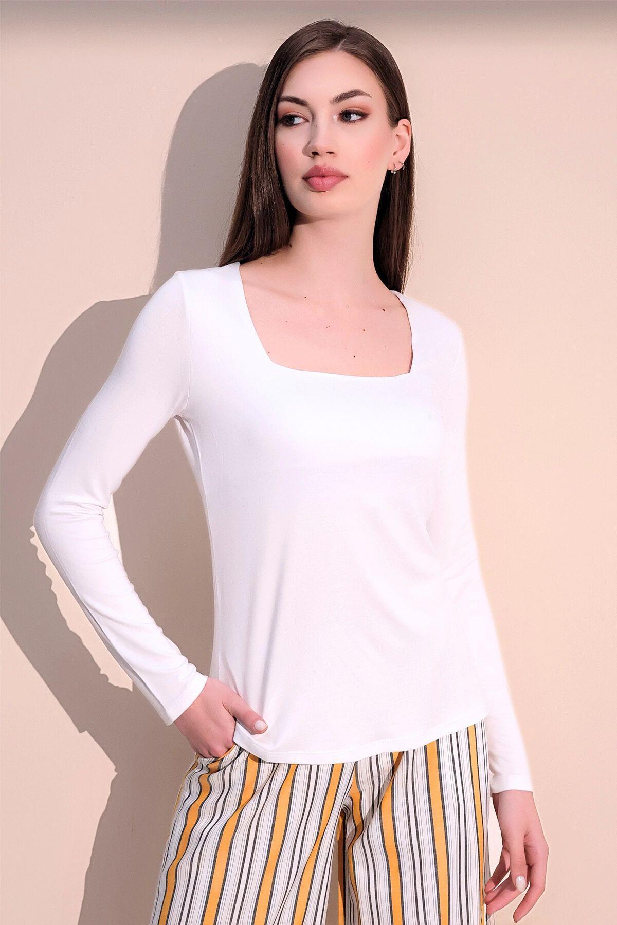 Kadın Beyaz Günlük Stil Basic Kare Yaka Uzun Kol Bluz Kadın Beyaz Günlük Stil Basic Kare Yaka Uzun Kol Bluz N3166 42