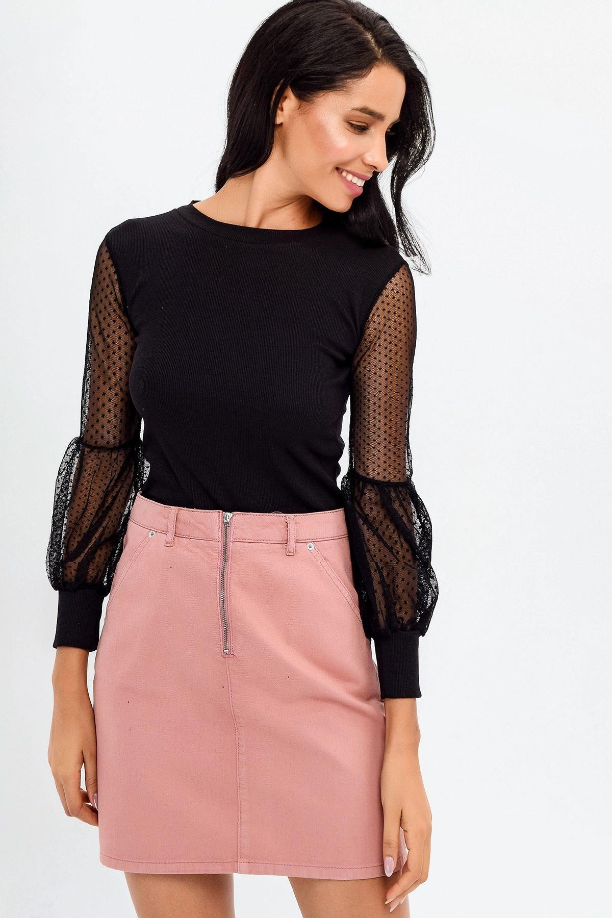 Kadın Siyah Yuvarlak Yaka, Uzun Kol, Kolları Tül Detaylı, , Düz Kesim, Standart Boy Bluz Kadın Siyah Yuvarlak Yaka, Uzun Kol, Kolları Tül Detaylı, , Düz Kesim, Standart Boy Bluz NT4006-1720 42