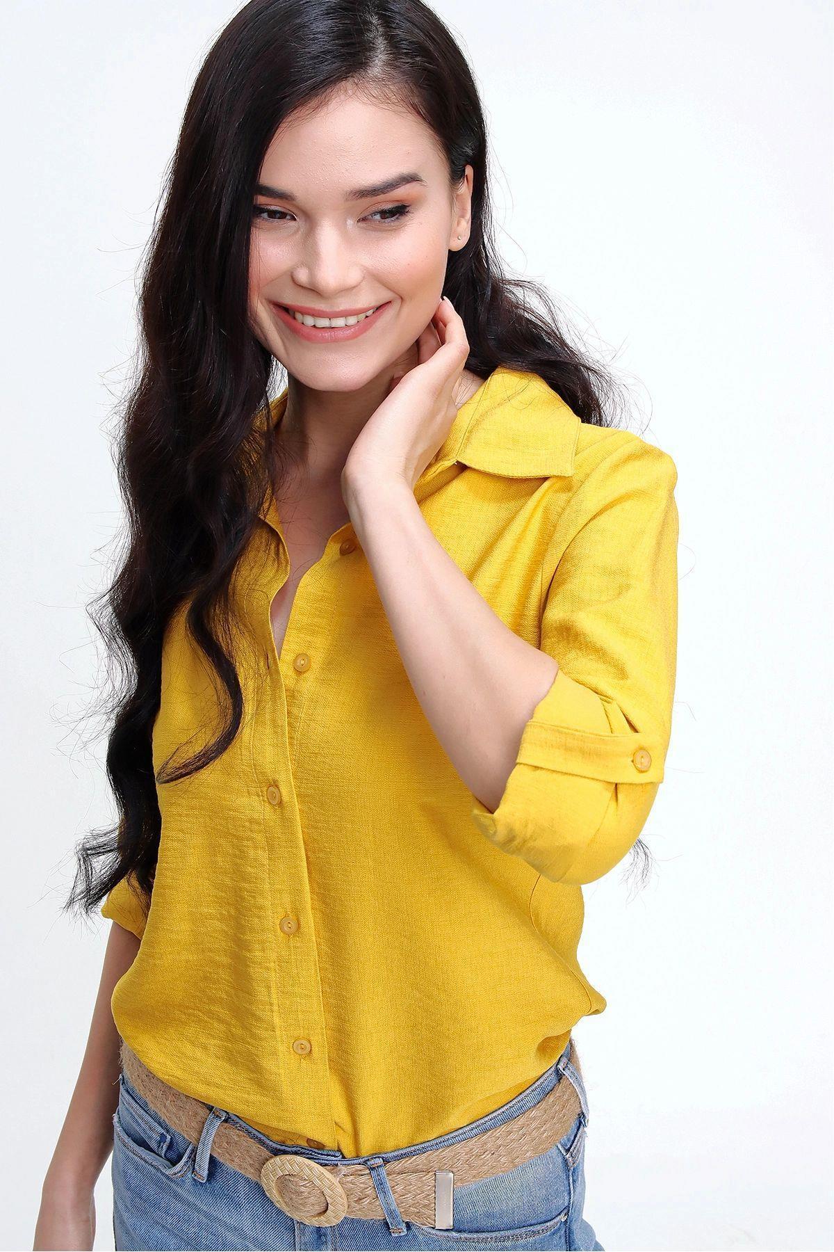 Kadın Hardal Klasik Yaka Uzun Kol Regular Kesim Standart Boy Gömlek(Özel Kumaş) Kadın Hardal Klasik Yaka Uzun Kol Regular Kesim Standart Boy Gömlek(Özel Kumaş) N3043 42