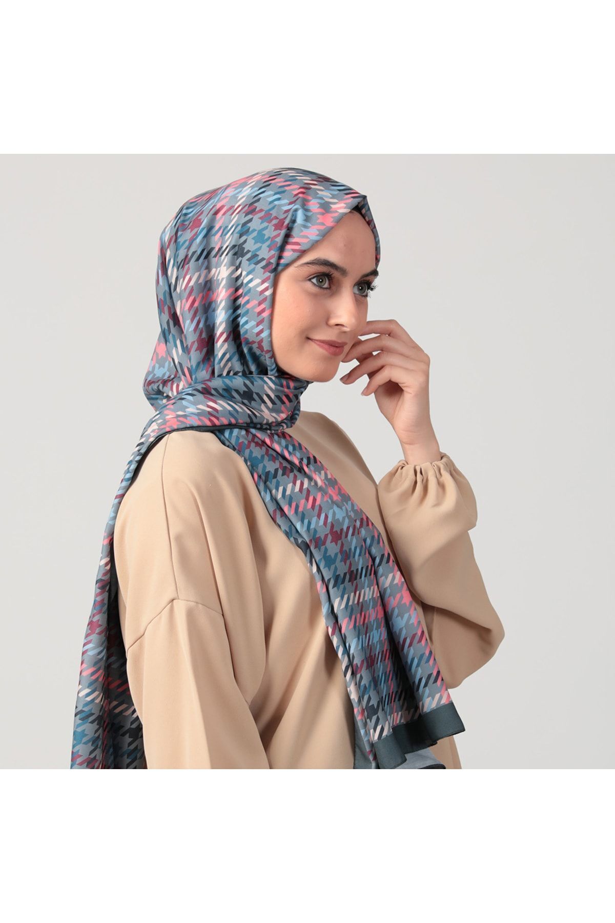 Pamuk Ipek Şal - Kazayağı Desen - Füme Pamuk Ipek Şal - Kazayağı Desen - Füme T611
