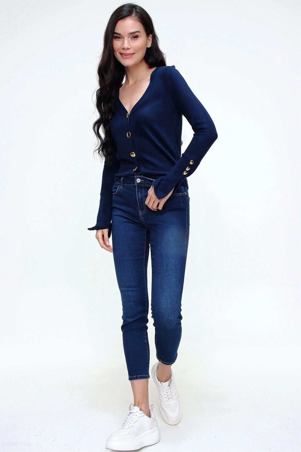 Kadın Lacivert Düğmeli, Yumuşak Dokulu, Düz Kesim Hırka (GOLD DÜĞME DETAYLI VEYA KISA TRİKO) Kadın Lacivert Düğmeli, Yumuşak Dokulu, Düz Kesim Hırka (GOLD DÜĞME DETAYLI VEYA KISA TRİKO) TYC00826928705 42