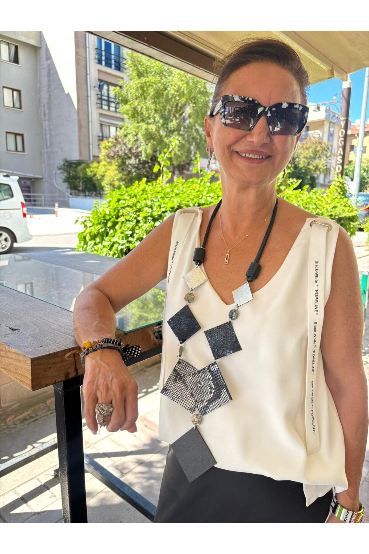 Siyah Çiçek Deri Kolye Siyah Çiçek Deri Kolye KO20161 تک سایز