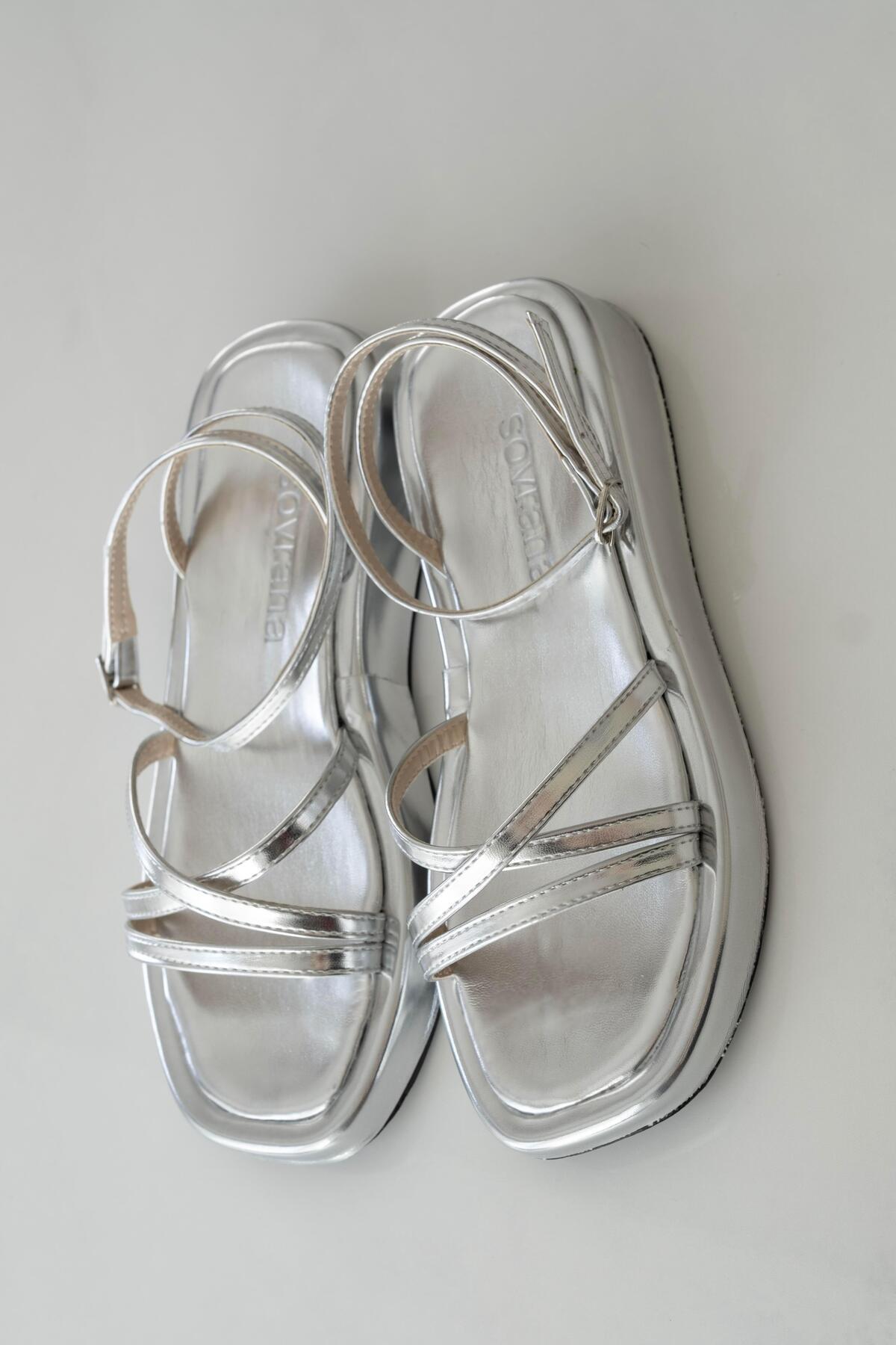 Bilekten Bağlamalı Sandalet Gümüş Metalik Bilekten Bağlamalı Sandalet Gümüş Metalik M004 40