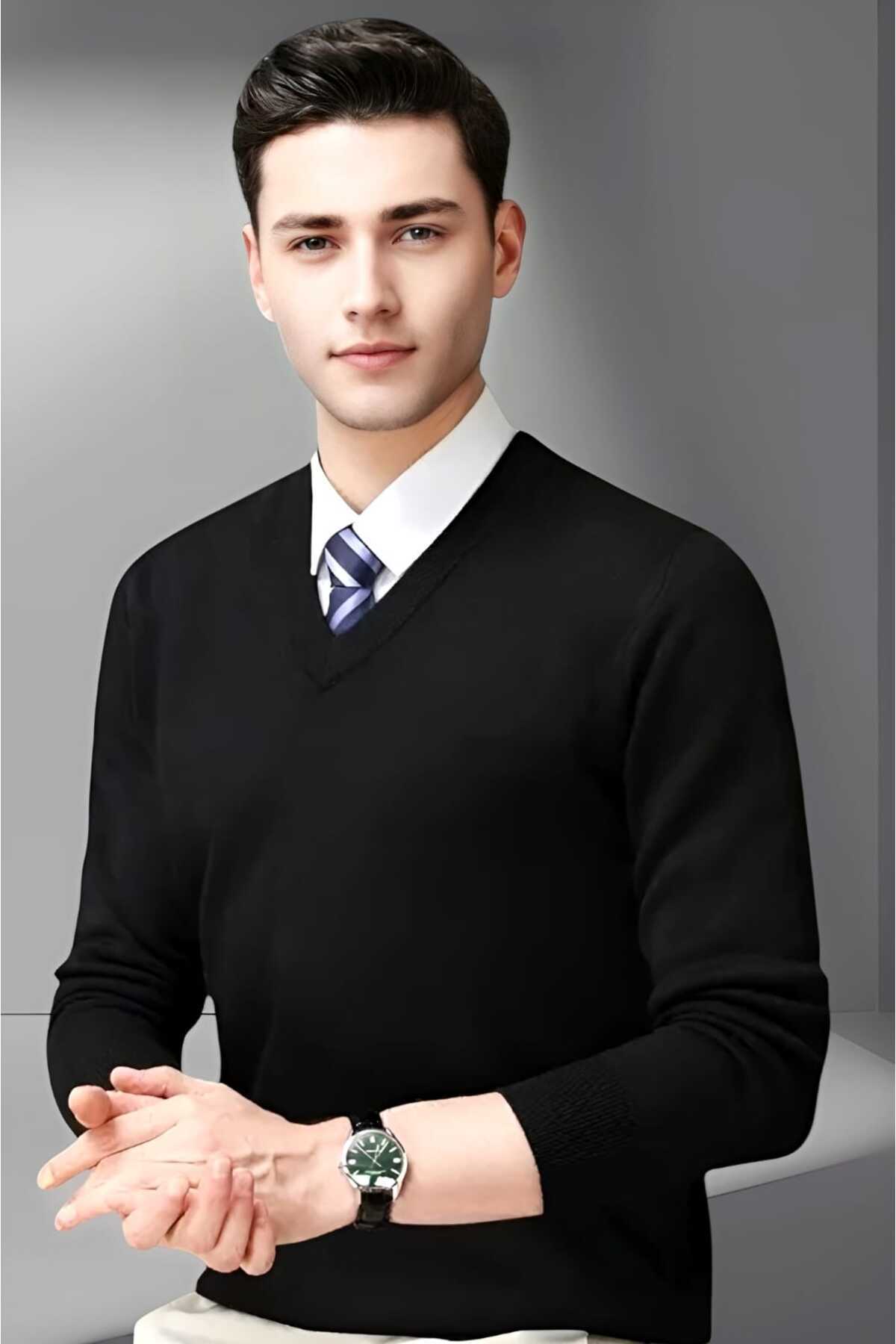Erkek Siyah Klasik Kesim Triko Örme Yünlü V Yaka Kazak Erkek Siyah Klasik Kesim Triko Örme Yünlü V Yaka Kazak COTYÜNVYAKA 3XL
