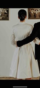 Kadın Volanlı Kruvaze Beyaz Saten Elbise Kadın Volanlı Kruvaze Beyaz Saten Elbise 5166 44
