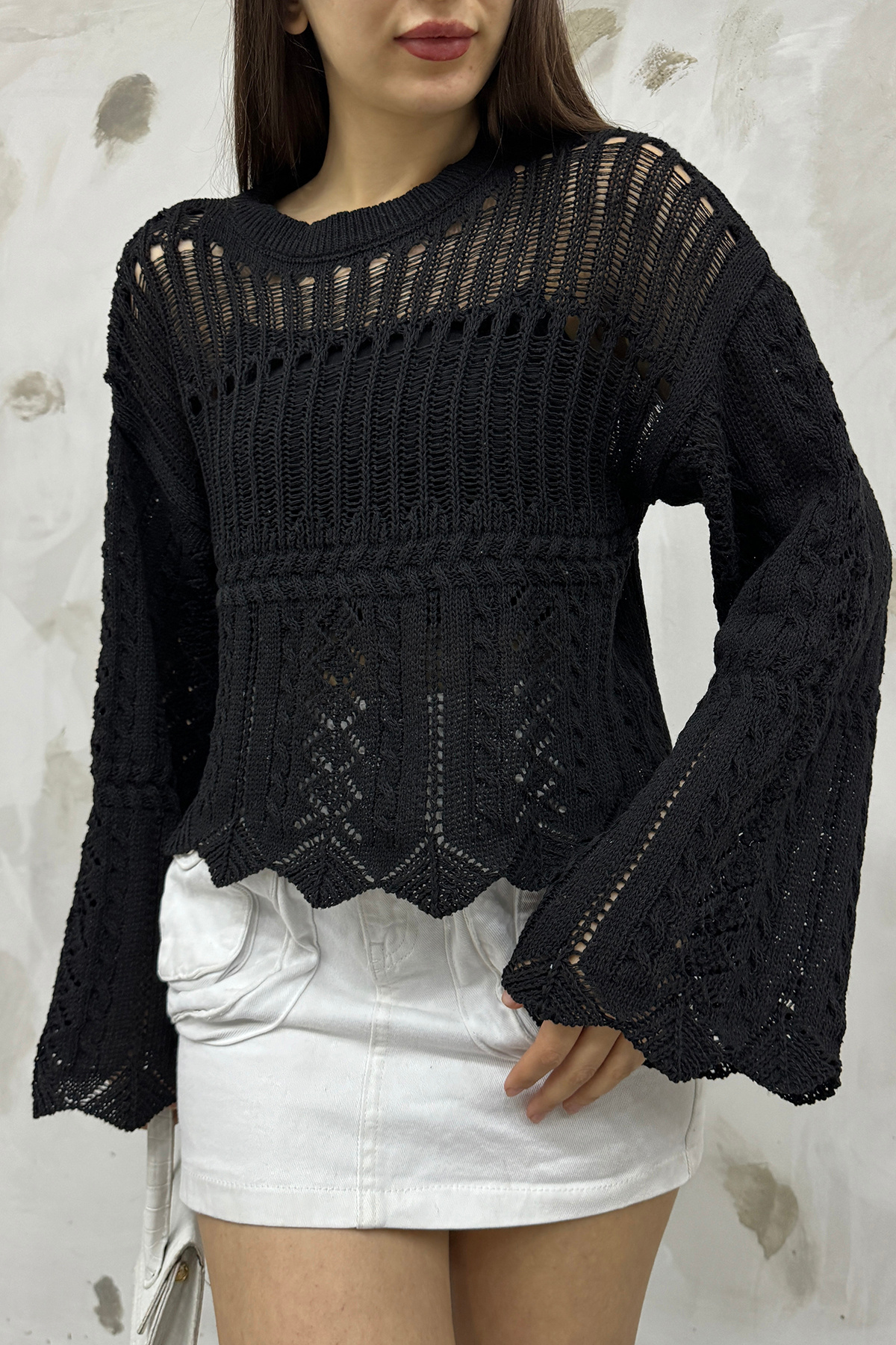 Ajurlu V Yaka Motif Detaylı Siyah Bluz Ajurlu V Yaka Motif Detaylı Siyah Bluz 22162-2 XL