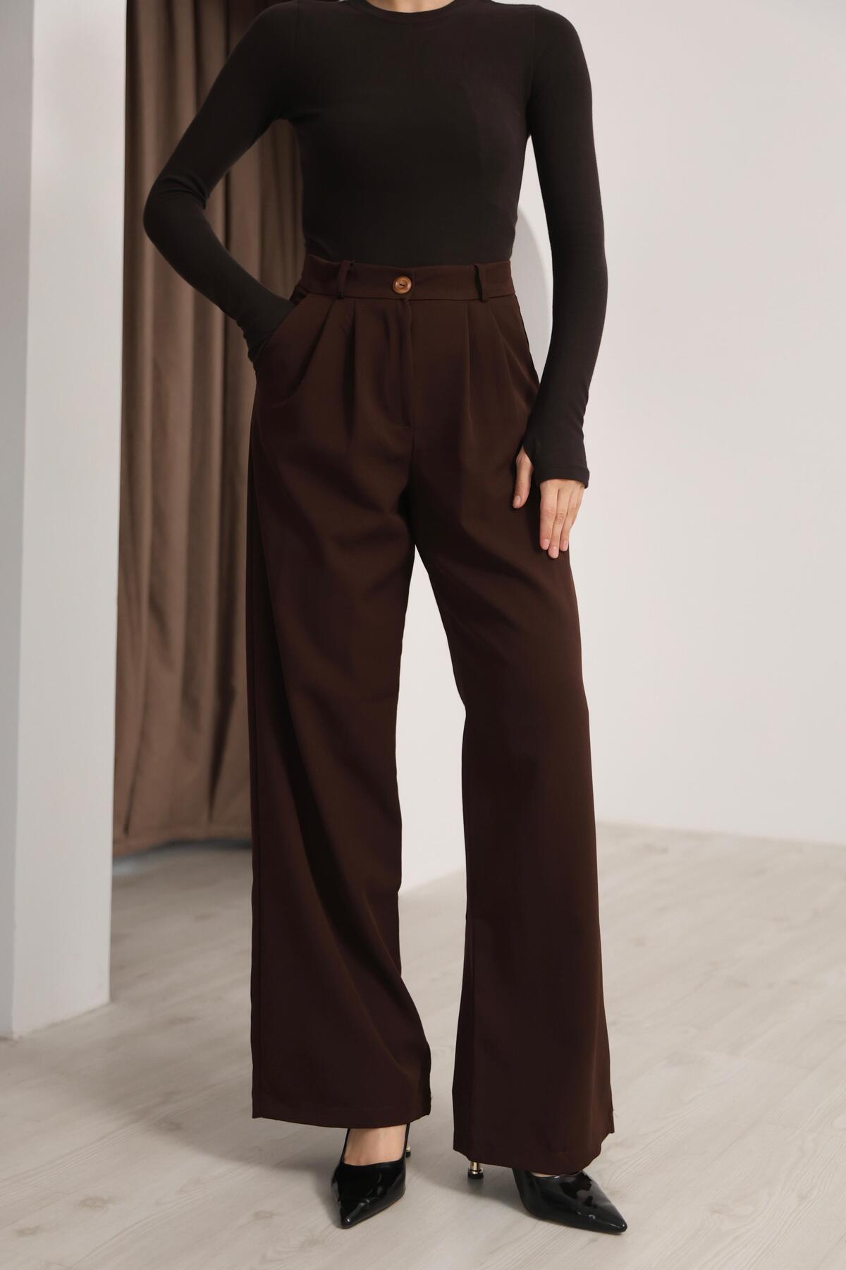 Kadın Kahverengi Yüksek Bel Palazzo Pantolon Kadın Kahverengi Yüksek Bel Palazzo Pantolon HZL2300 50