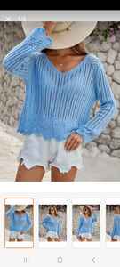 Ajurlu V Yaka Motif Detaylı Mavi Kazak Ajurlu V Yaka Motif Detaylı Mavi Kazak 22162 2XL