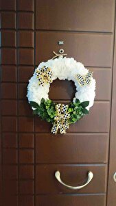 Beyaz Damalı Kapı Süsü Kapı Çelengi Duvar Süsü Beyaz Damalı Kapı Süsü Kapı Çelengi Duvar Süsü dmlkapısüsü تک سایز