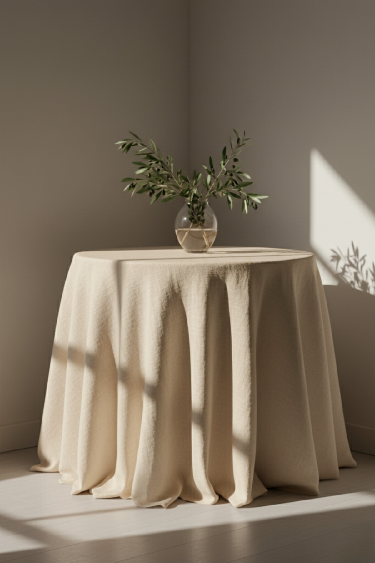 Keten Dokulu Bej Yuvarlak Masa Örtüsü Keten Dokulu Bej Yuvarlak Masa Örtüsü Dec173 210 x 210