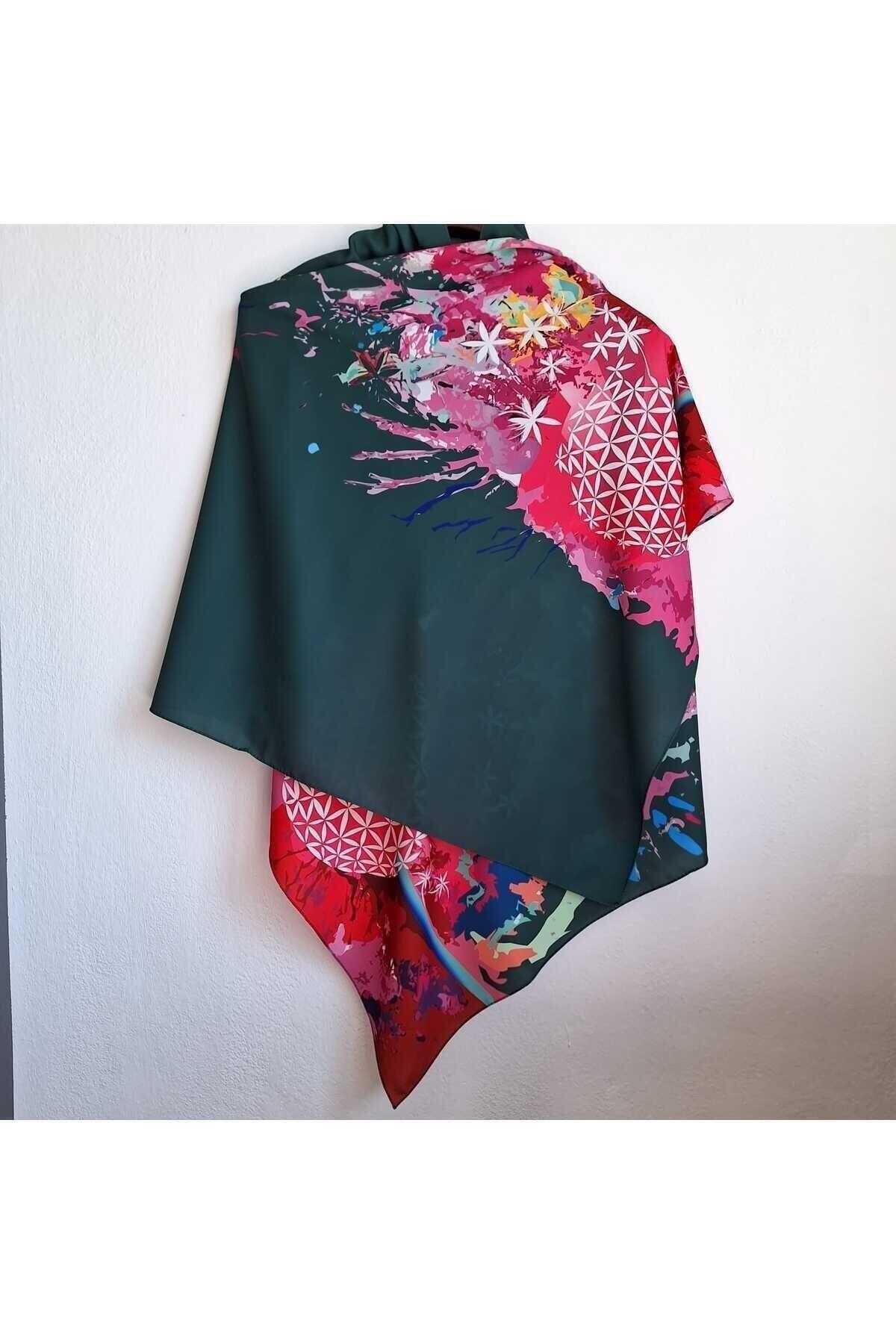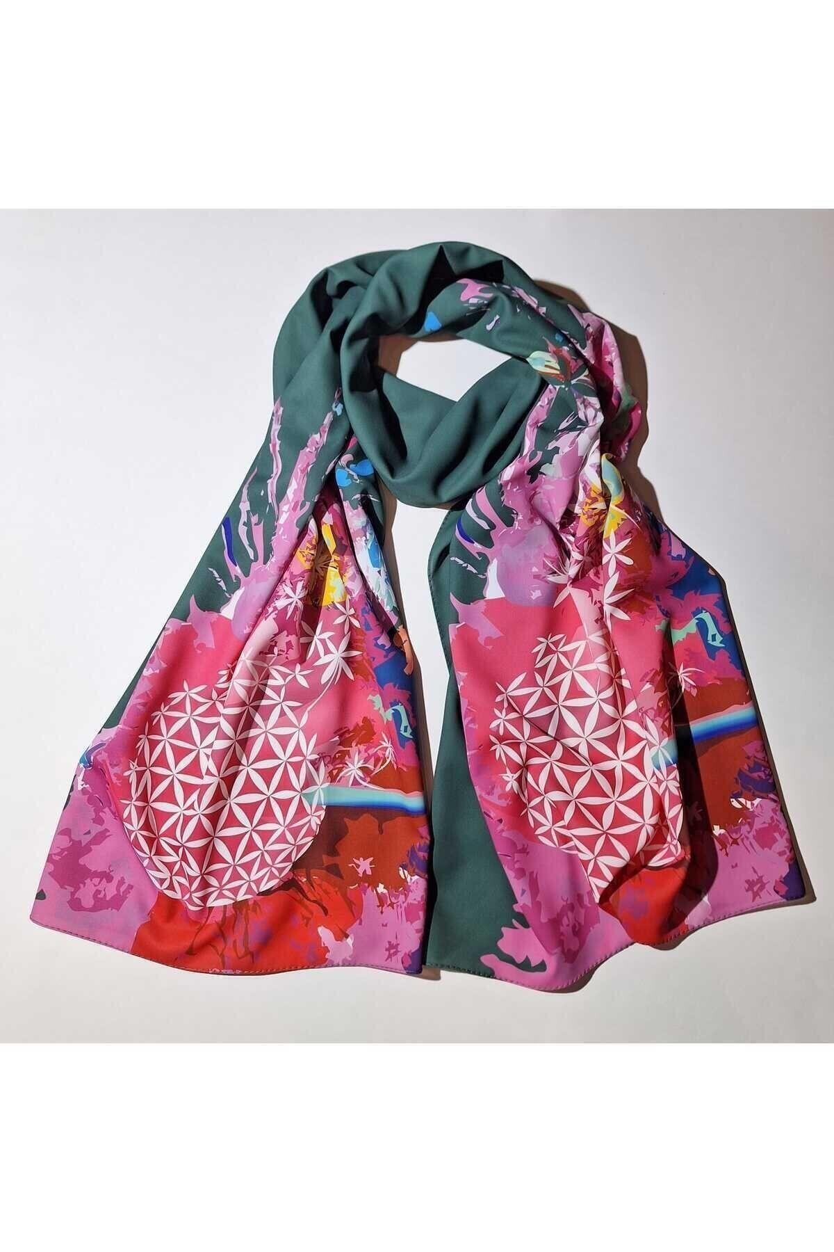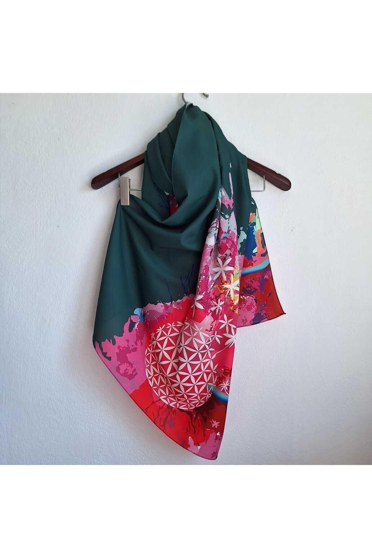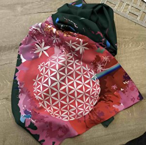Yeşil Şal Rengarenk Yaşam Çiçeği Fular Eşarp Yeşil Şal Rengarenk Yaşam Çiçeği Fular Eşarp 465 75 x 180
