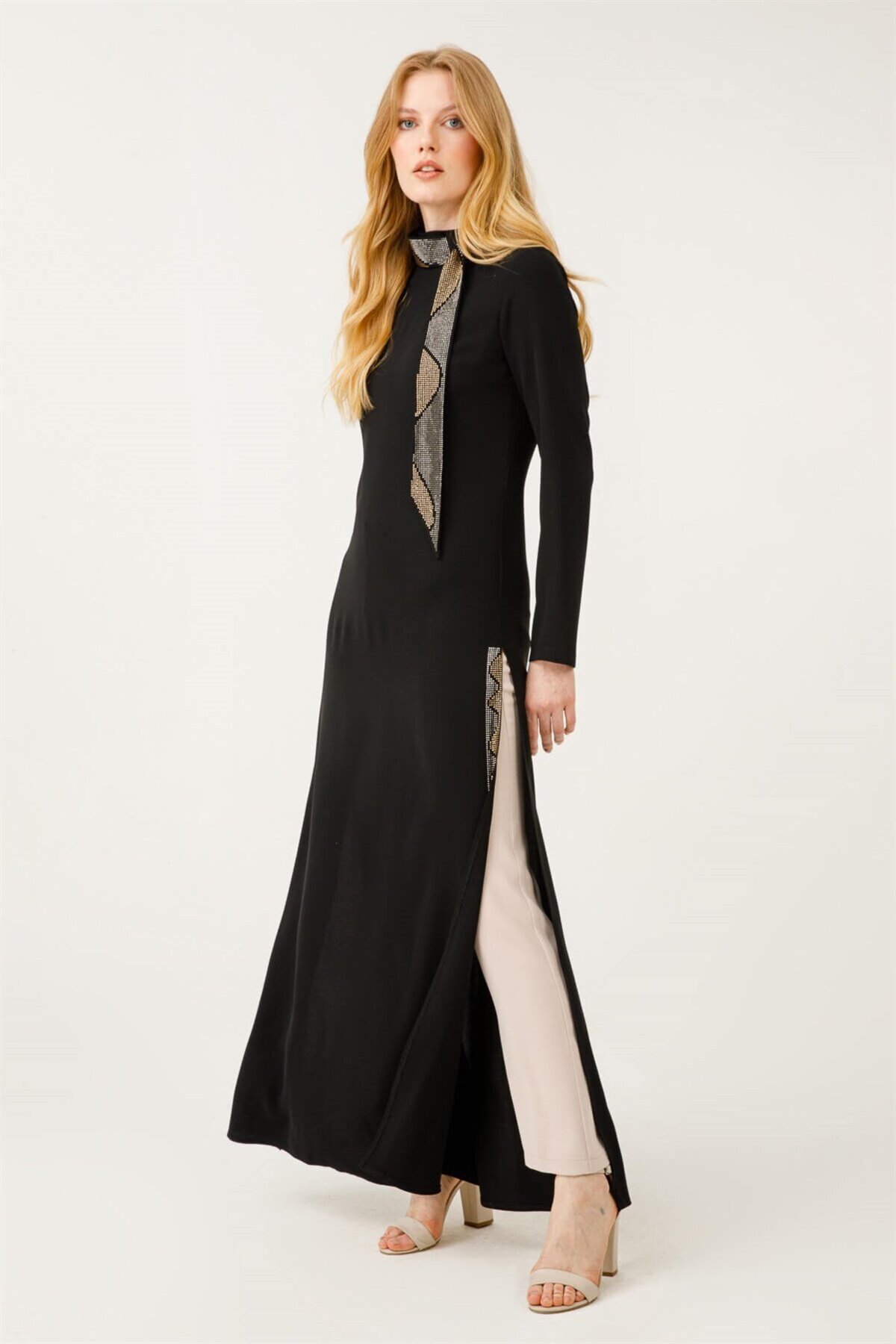 Siyah - Şifon Yelekli Ateş Desenli Abiye Elbise Siyah - Şifon Yelekli Ateş Desenli Abiye Elbise 1913612-205999 2