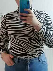 Kadın Siyah Zebra Desenli Balıkçı Yaka Bluz Kadın Siyah Zebra Desenli Balıkçı Yaka Bluz bkblz XL