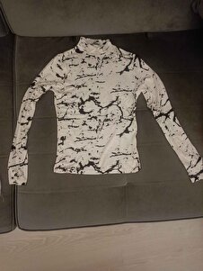 Kadın Beyaz Mermer Desenli Balıkçı Yaka Bluz Kadın Beyaz Mermer Desenli Balıkçı Yaka Bluz bkblz XL