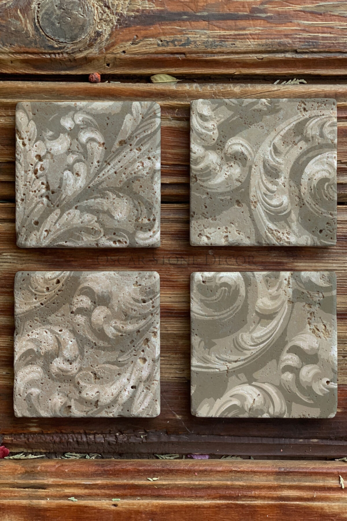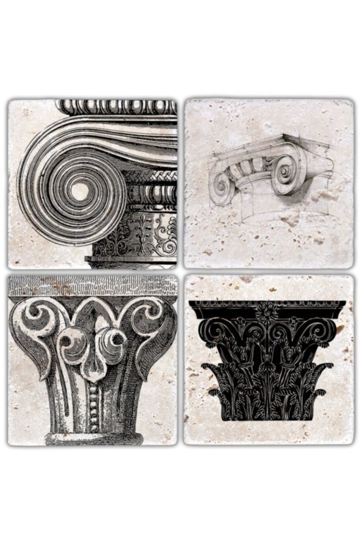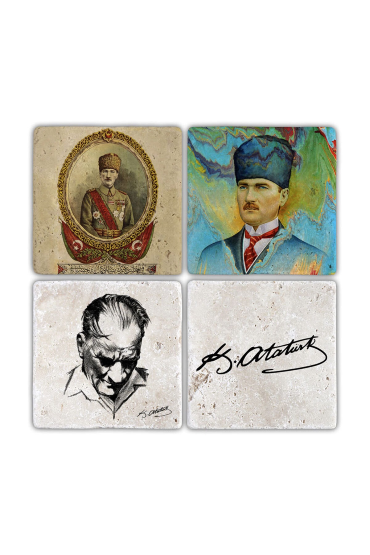 Baskılı Doğaltaş Bardak Altlığı 4'lü Set Baskılı Doğaltaş Bardak Altlığı 4'lü Set 4DSN-030 تک سایز