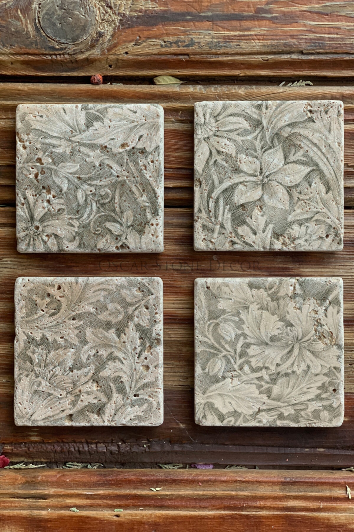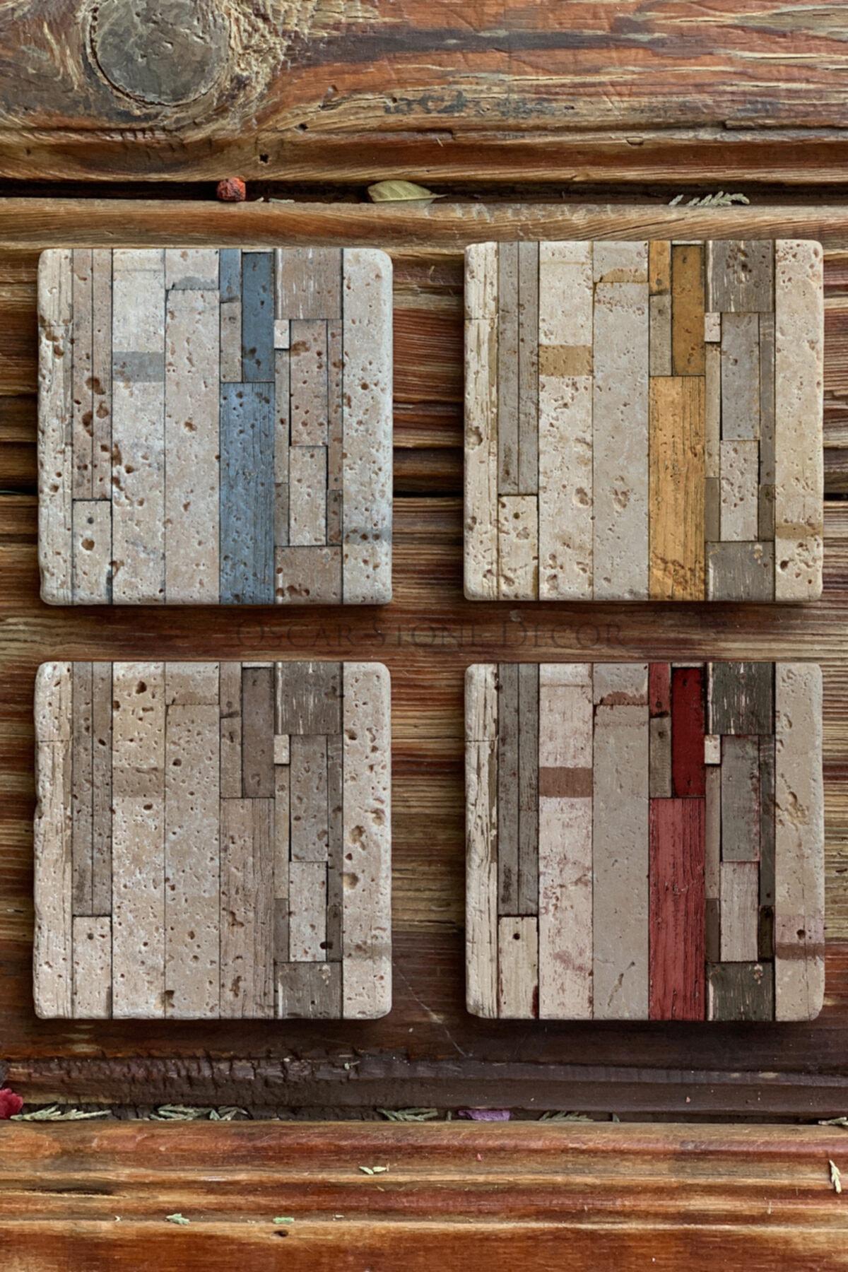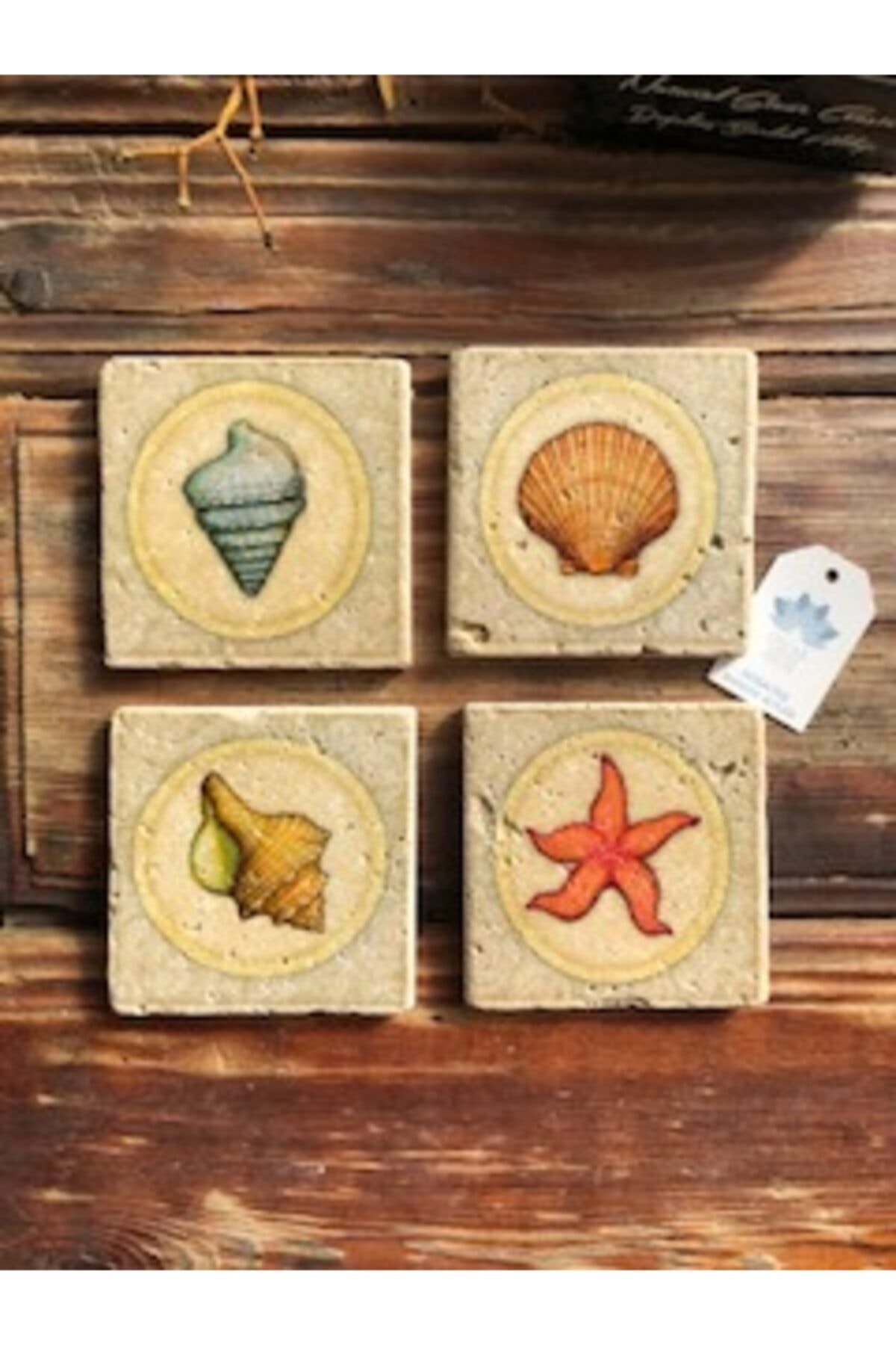 Baskılı Doğaltaş Bardak Altlığı 4'lü Set Baskılı Doğaltaş Bardak Altlığı 4'lü Set 4DSN-030 تک سایز