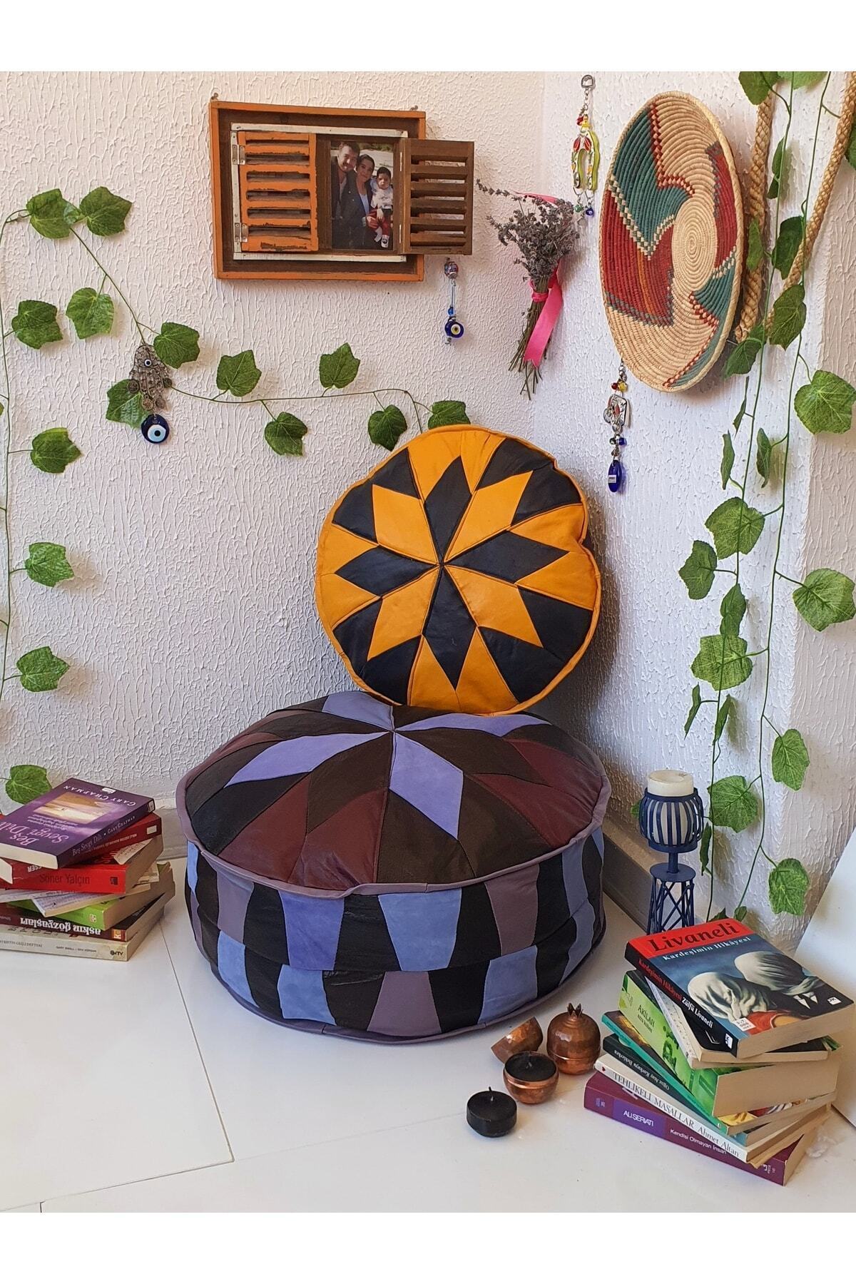 El Yapımı Hakiki Deri Bohem Ottoman Puf Yer Bahçe Balkon Minderi Ikili Set 60-40 Cm(DOLGULU) El Yapımı Hakiki Deri Bohem Ottoman Puf Yer Bahçe Balkon Minderi Ikili Set 60-40 Cm(DOLGULU) Set Of 2 تک سایز