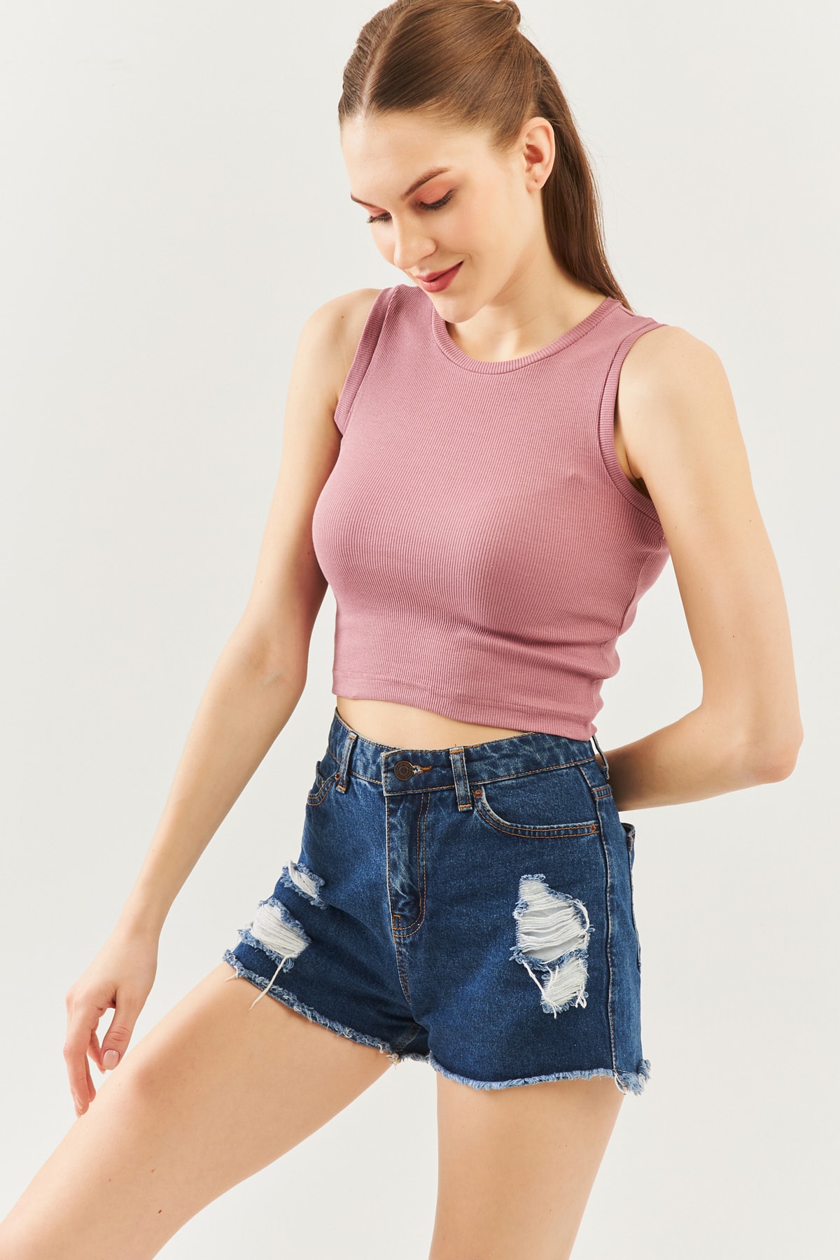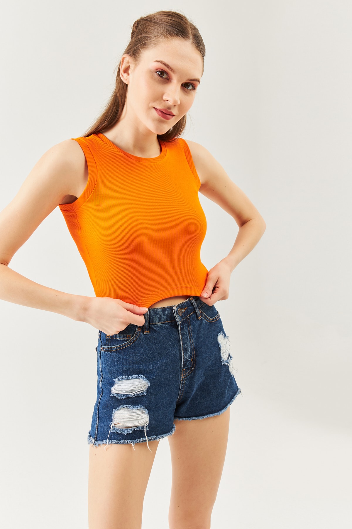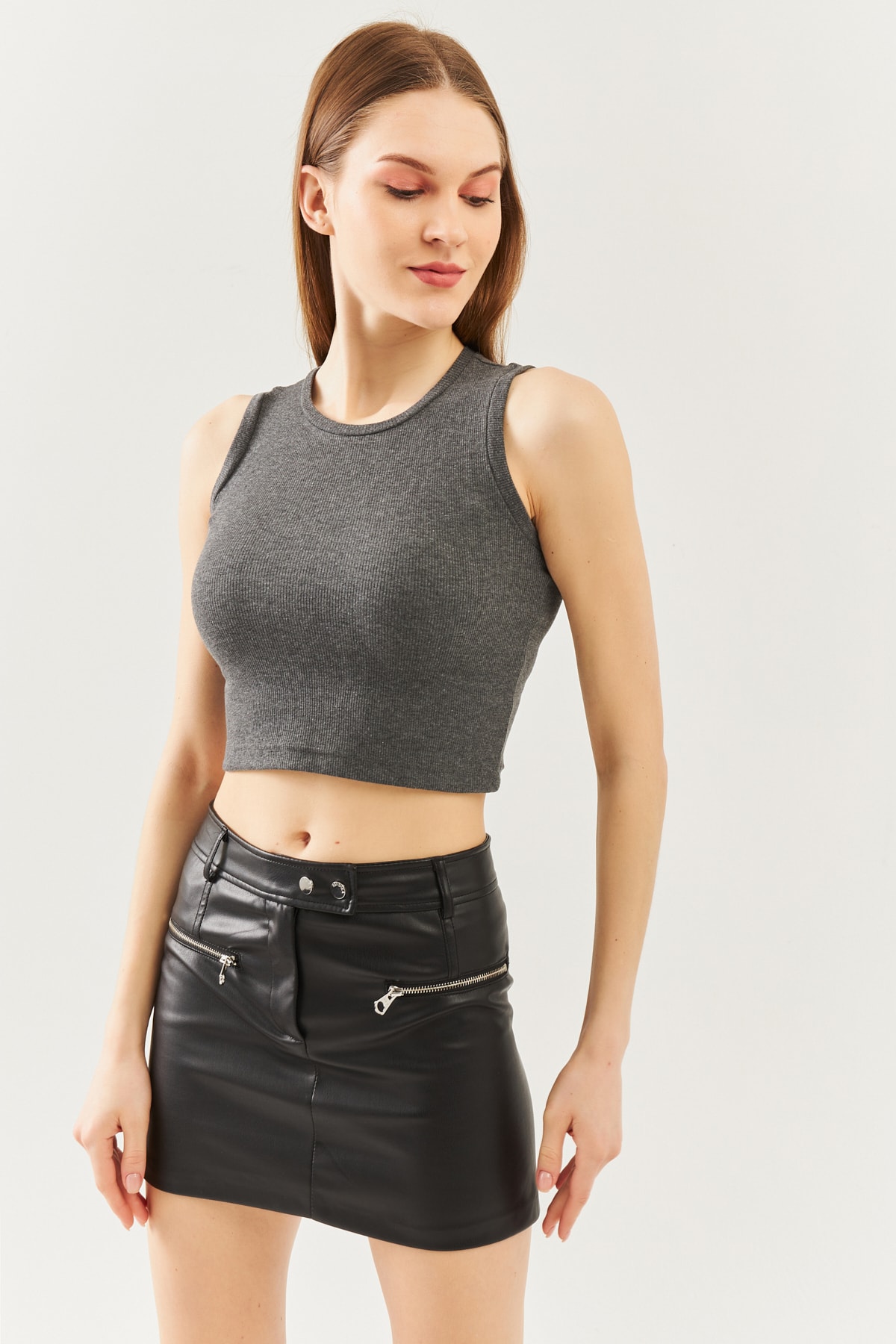 Açık Kahve Sıfır Kol Bisiklet Yaka Vucuda Oturan %100 Pamuklu Kaşkorse Esnek Crop Bluz Açık Kahve Sıfır Kol Bisiklet Yaka Vucuda Oturan %100 Pamuklu Kaşkorse Esnek Crop Bluz BGCRPSK01 M