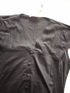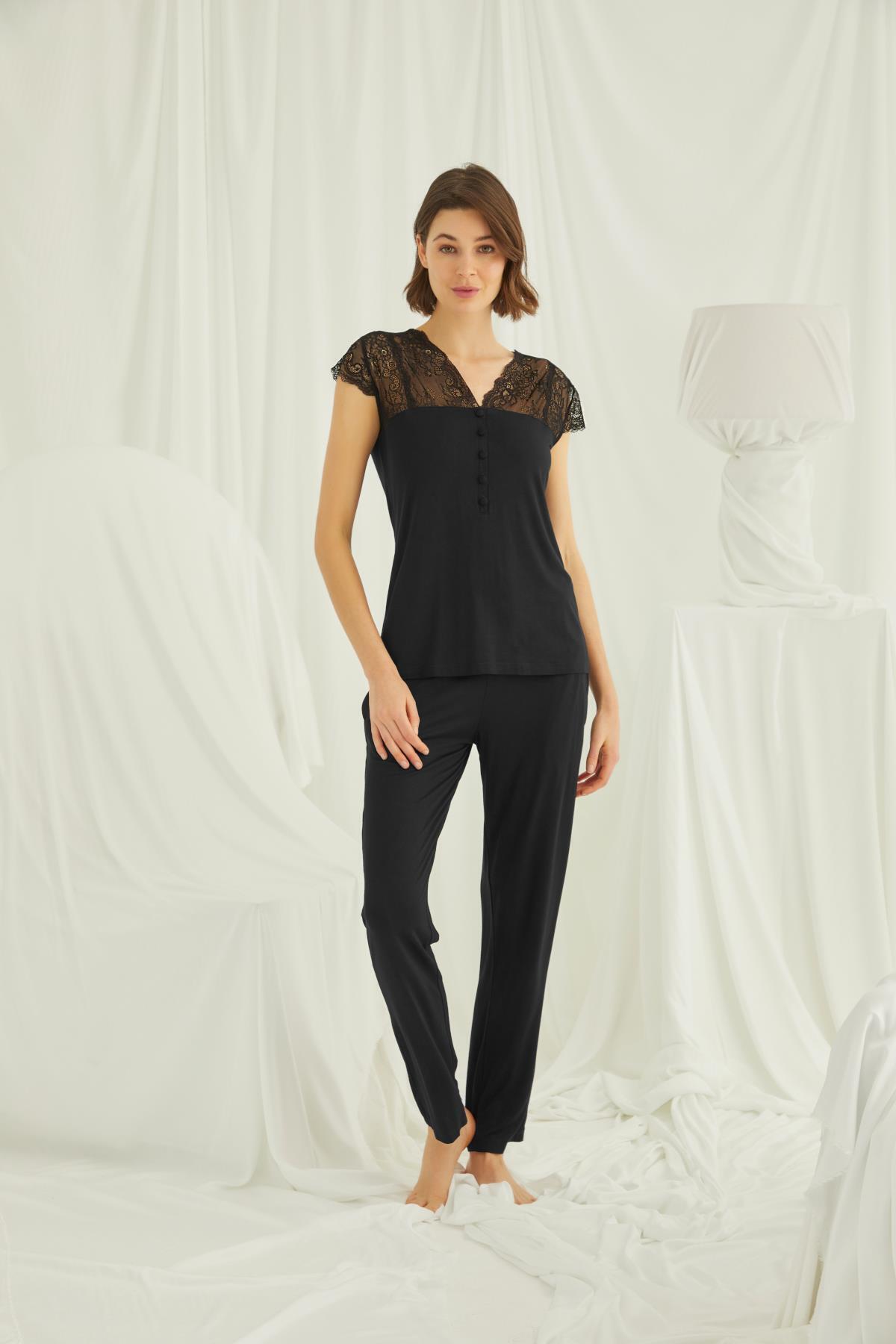 Yakası ve Omzu Dantelli Önü Düğmeli Pijama Takımı Yakası ve Omzu Dantelli Önü Düğmeli Pijama Takımı 18K18422 XL