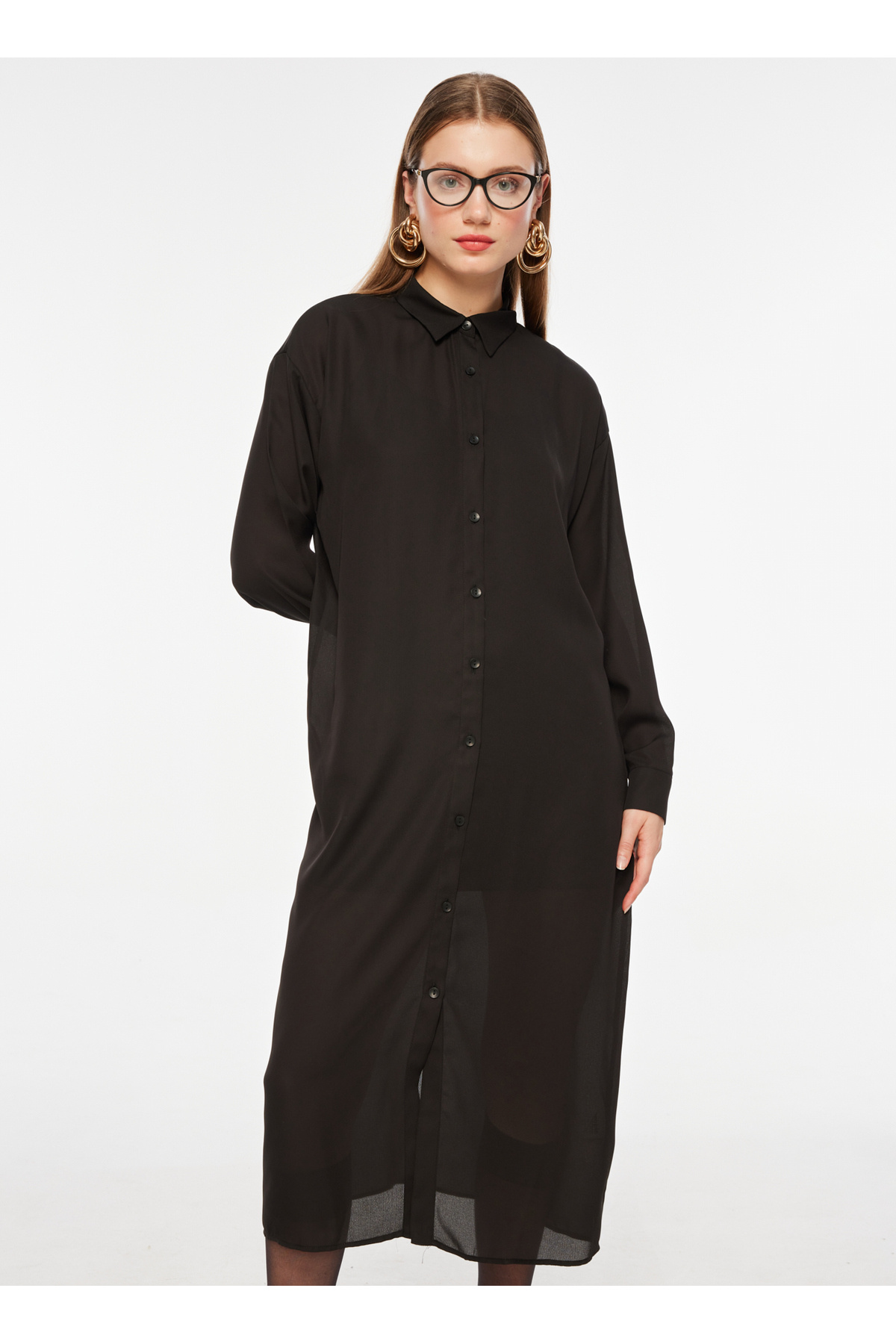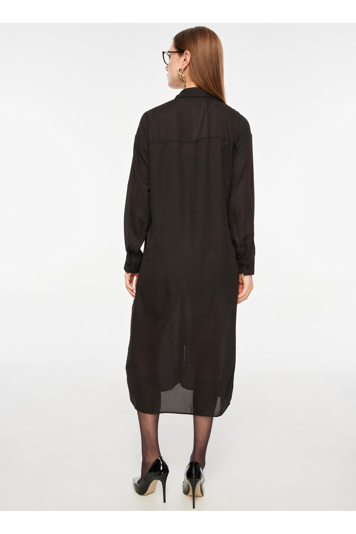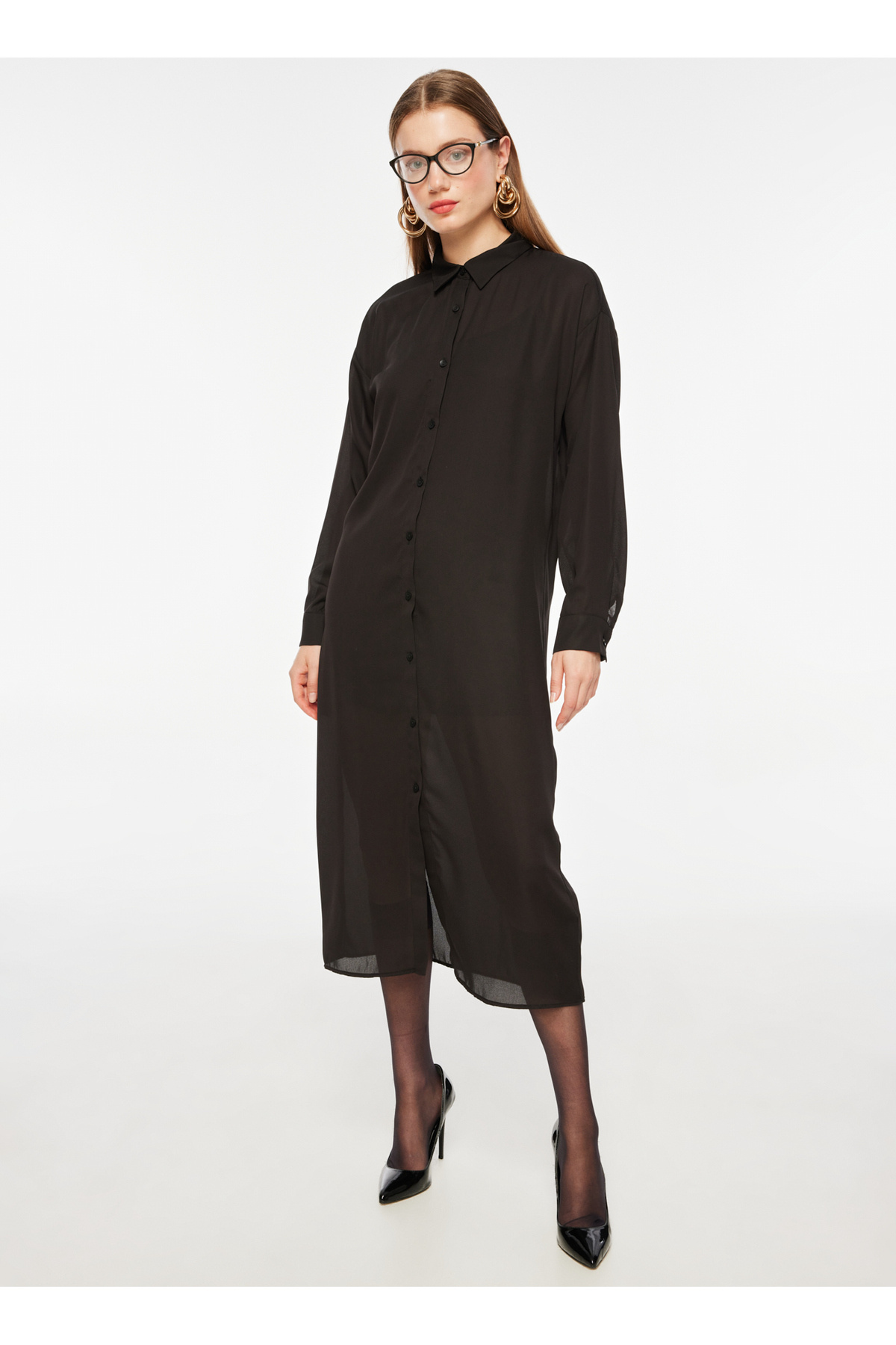 Gömlek Yaka Siyah Midi Kadın Elbise MİKRO Gömlek Yaka Siyah Midi Kadın Elbise MİKRO 5002998294 42