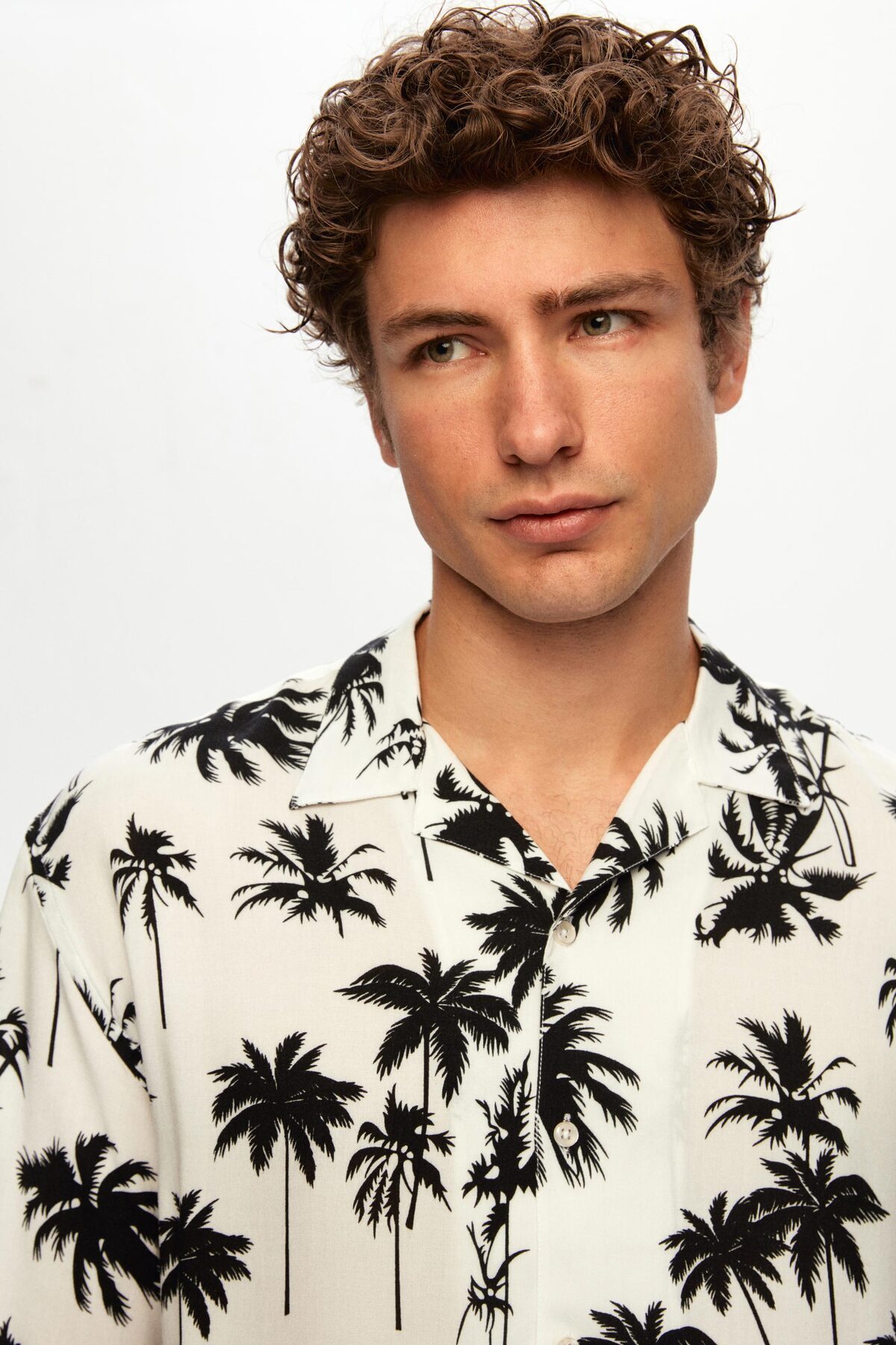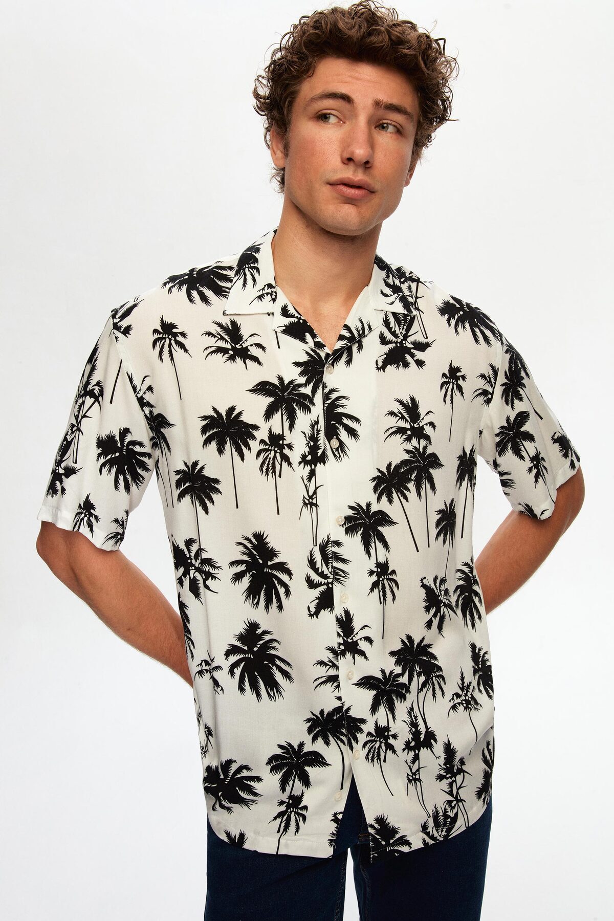 Ds Damat Relaxed Kırık Beyaz Desenli Palmiye Desenli Kısa Kollu Yazlık Viskon Gömlek Ds Damat Relaxed Kırık Beyaz Desenli Palmiye Desenli Kısa Kollu Yazlık Viskon Gömlek 0HC02ORT10313 XL