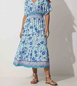 Kadın Mavi V Yaka Çiçekli Yazlık Viskon Elbise HF00435 Kadın Mavi V Yaka Çiçekli Yazlık Viskon Elbise HF00435 40