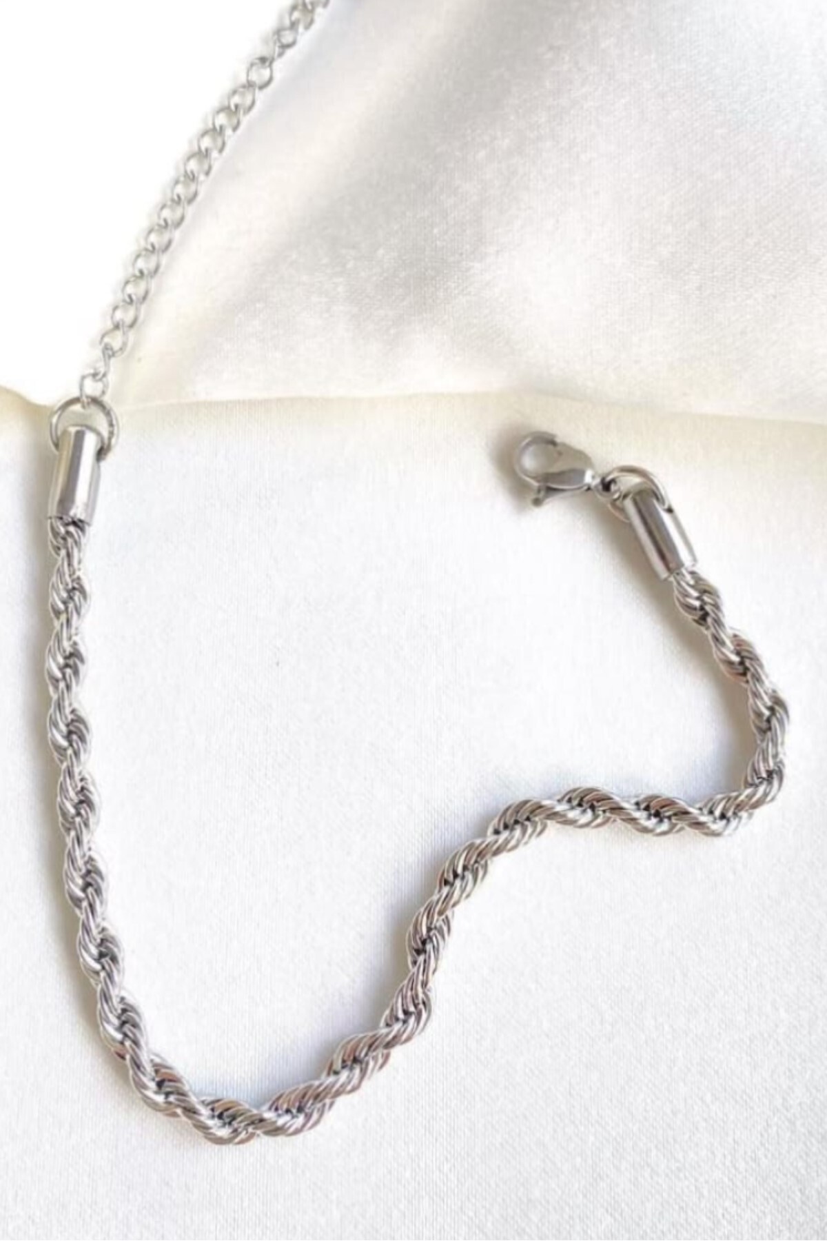 925 Ayar Gümüş Örgülü Burma Halat Zincir Bileklik 925 Ayar Gümüş Örgülü Burma Halat Zincir Bileklik ms-5737 18 cm