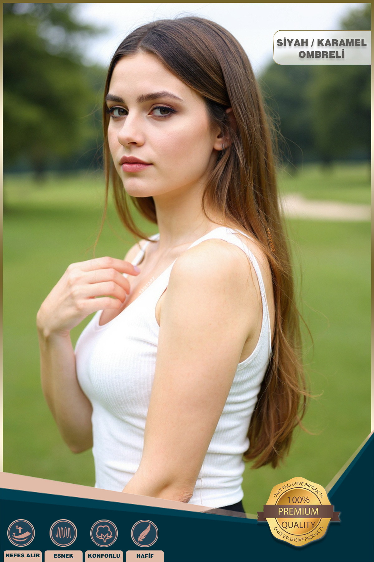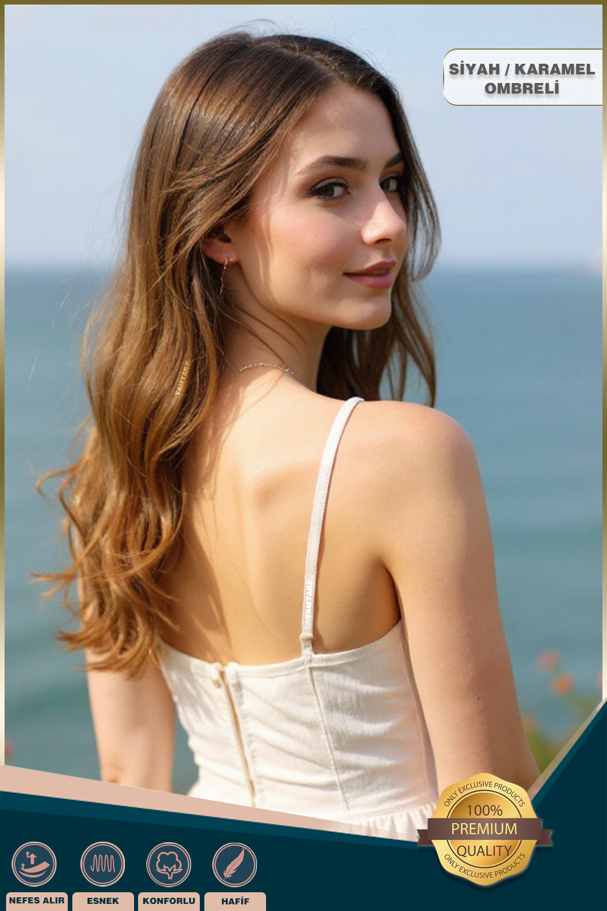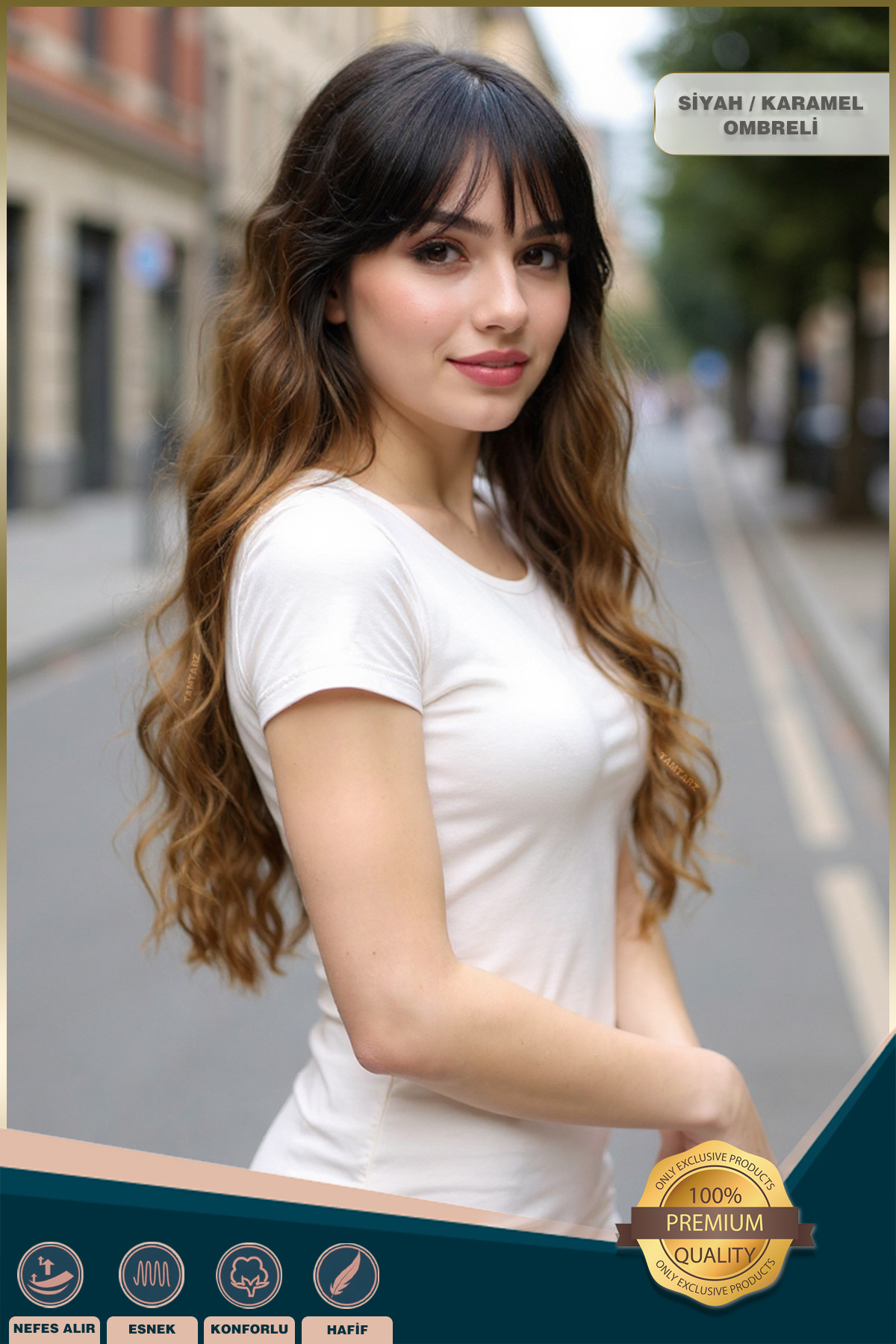Fiber Sentetik Uzun Düz Peruk - Siyah / Karamel Ombreli Fiber Sentetik Uzun Düz Peruk - Siyah / Karamel Ombreli H9016-2F27-PM-14X تک سایز