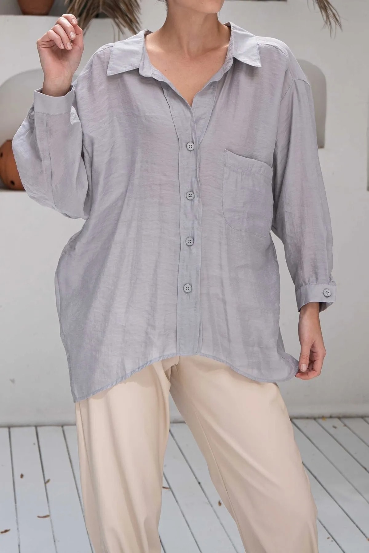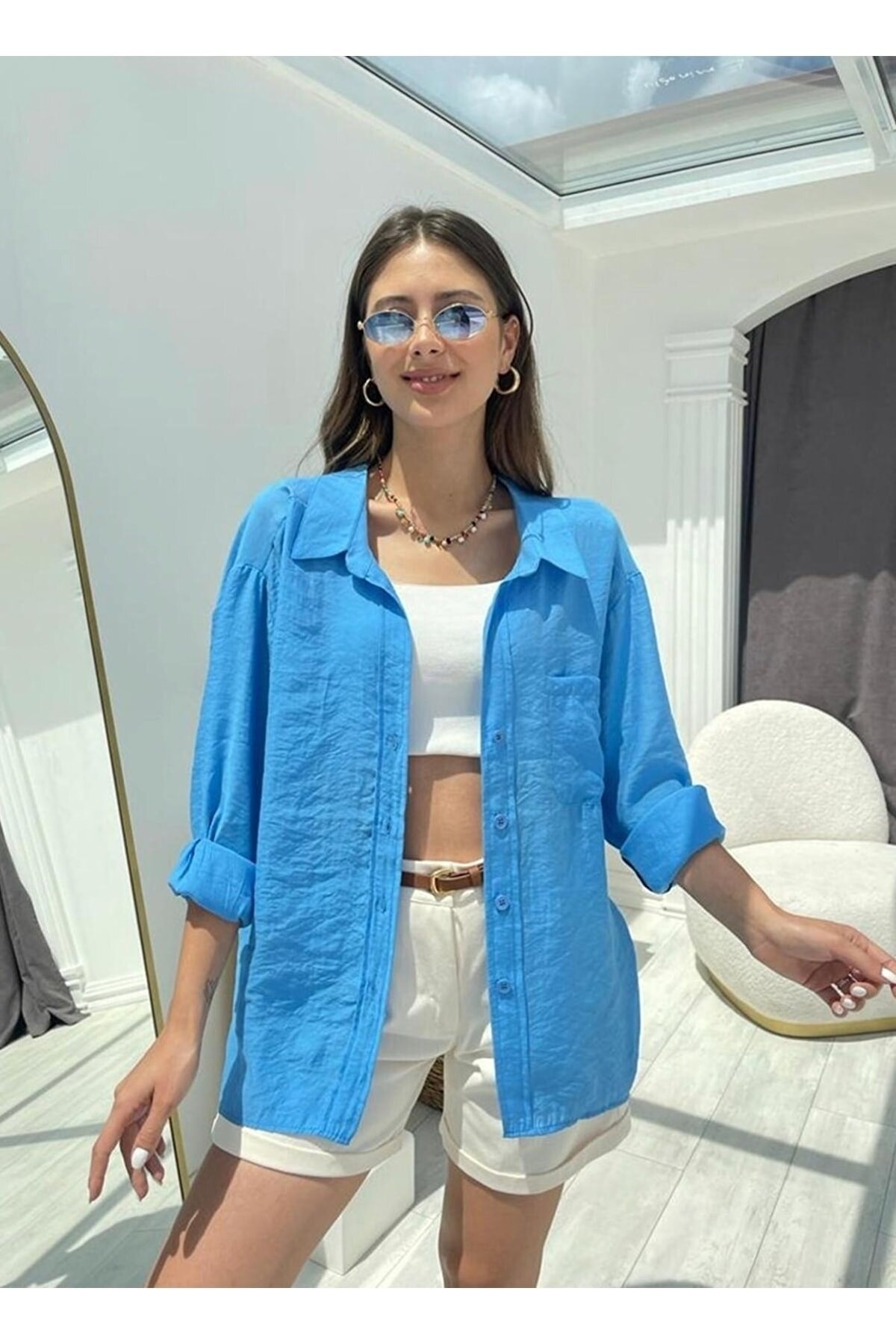 Düşük Omuzlu Yazlık Kumaş Oversize Gömlek Düşük Omuzlu Yazlık Kumaş Oversize Gömlek dusomuzoversigom Standart