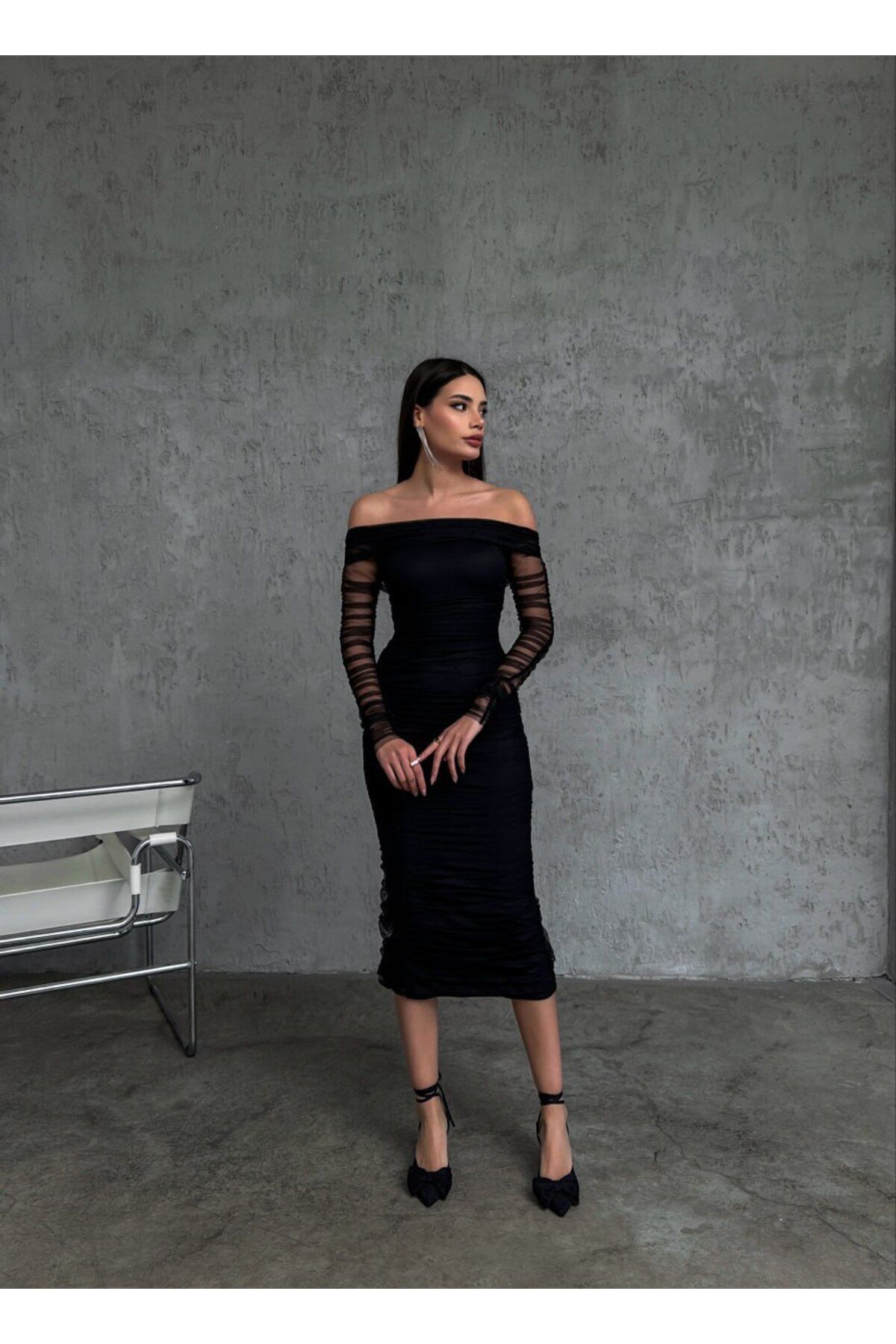 Tek Kollu Midi Boy Tül Elbise Tek Kollu Midi Boy Tül Elbise 4701 L