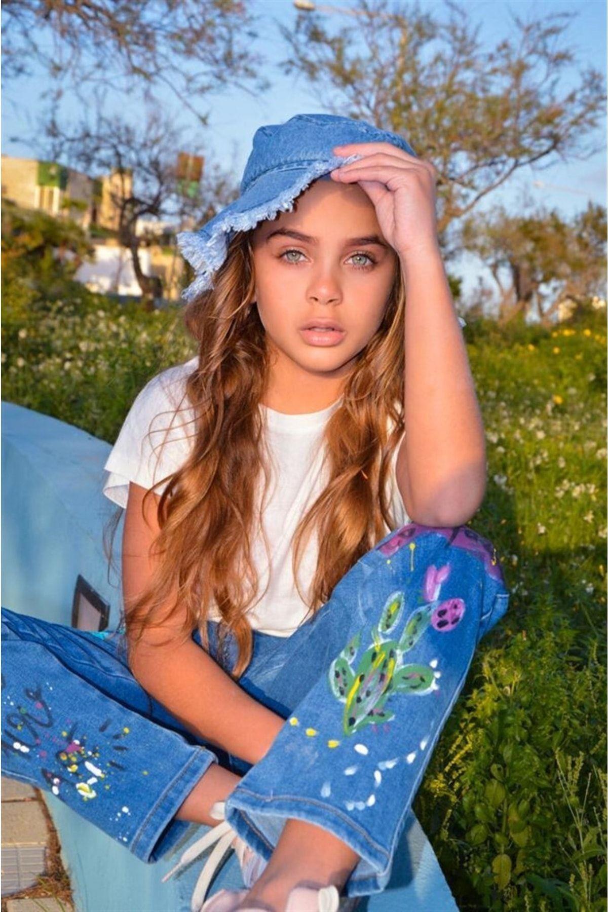 Kız Çocuk Düz Renk Tişört El Boyamalı Likralı Mavi Kot Pantolon 2'li Takım Kız Çocuk Düz Renk Tişört El Boyamalı Likralı Mavi Kot Pantolon 2'li Takım 1203