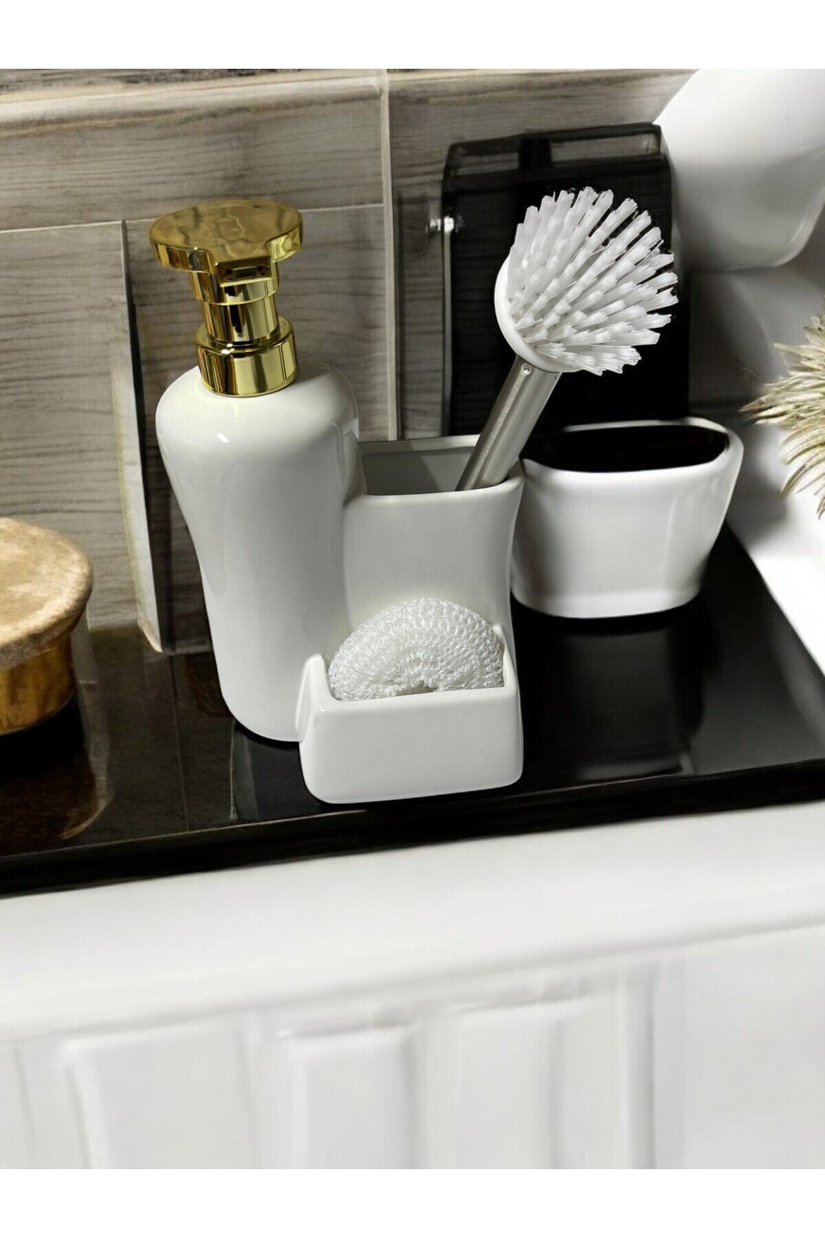 Beyaz Banyo Seti - 3'lü / Altın Yaldızlı Beyaz Banyo Seti - 3'lü / Altın Yaldızlı SBS-01 تک سایز