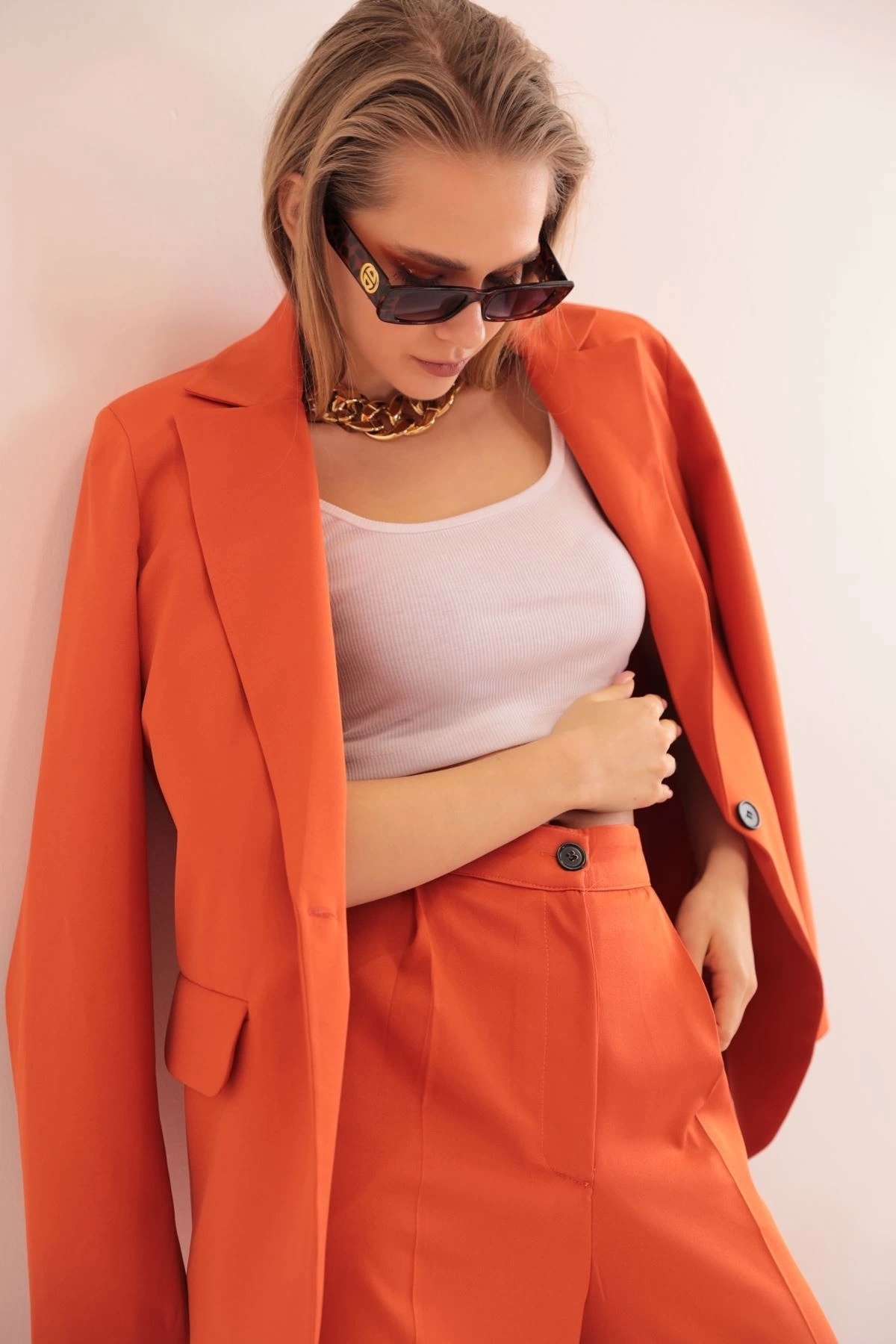 Keten Kruvaze Blazer Ceket Turuncu Keten Kruvaze Blazer Ceket Turuncu 7626372782 42