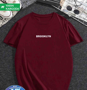 Bordo Unisex New York Baskılı Oversize T-shirt Bordo Unisex New York Baskılı Oversize T-shirt BRKLYNTSHRT02 4XL