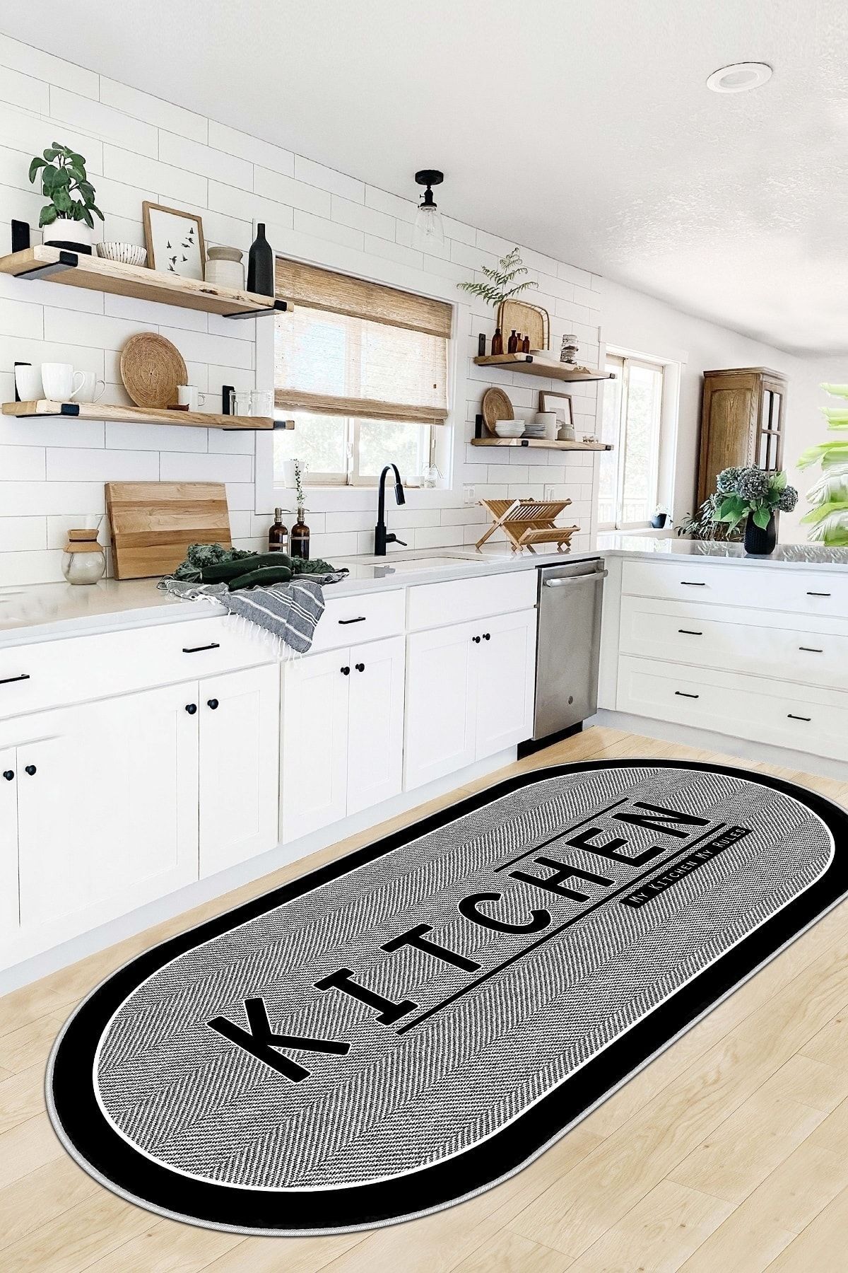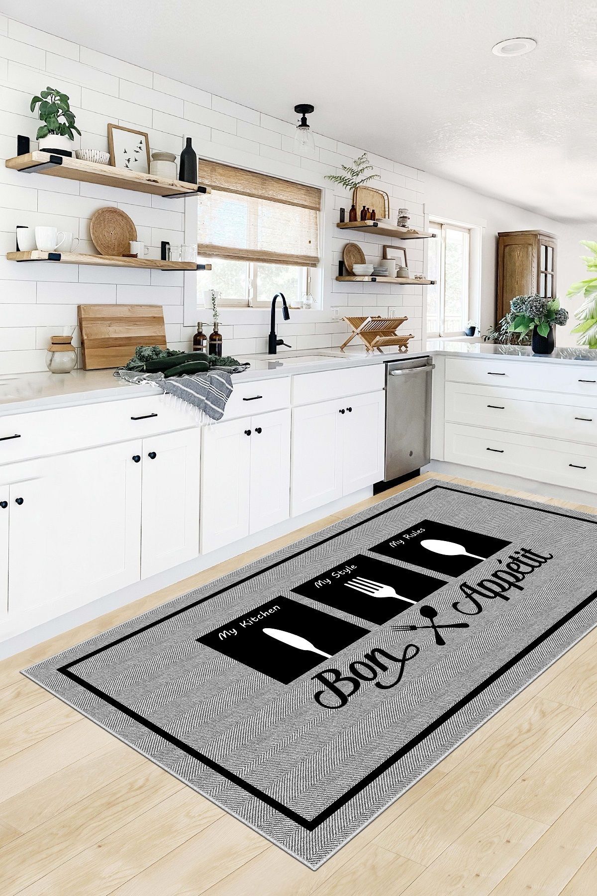Makinede Yıkanabilir Kaymaz Taban Leke Tutmaz Modern Gri Mutfak Halısı Ve Balkon Halısı Makinede Yıkanabilir Kaymaz Taban Leke Tutmaz Modern Gri Mutfak Halısı Ve Balkon Halısı CH561 160 x 230