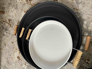 3 Lü 45siyah, 37siyah, 30beyaz Ahşap Kulplu Metal Tepsi Çay Tepsisi Sunum Tepsi Seti 3 Lü 45siyah, 37siyah, 30beyaz Ahşap Kulplu Metal Tepsi Çay Tepsisi Sunum Tepsi Seti 3lüset تک سایز