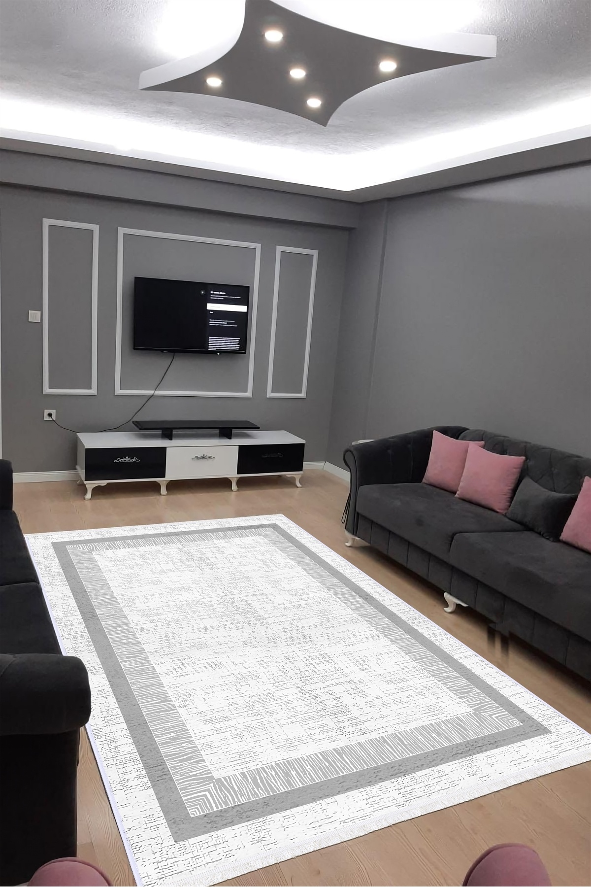 Gri Beyaz Halı Salon Halısı Yatak Odası Halısı Yolluk Mutfak Halısı Makinede Yıkanabilir Gri Beyaz Halı Salon Halısı Yatak Odası Halısı Yolluk Mutfak Halısı Makinede Yıkanabilir ÇERÇEVE GRİ HALI 80 x 240