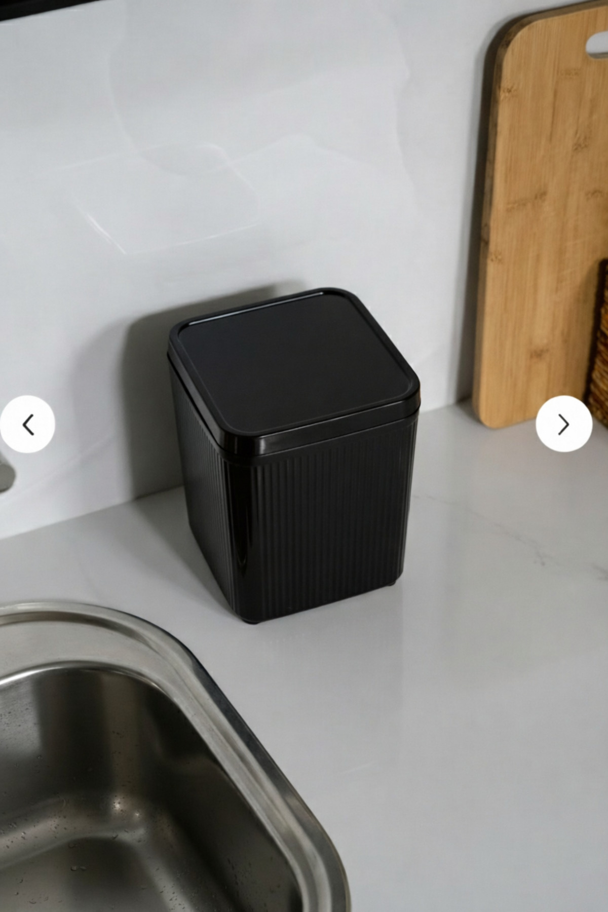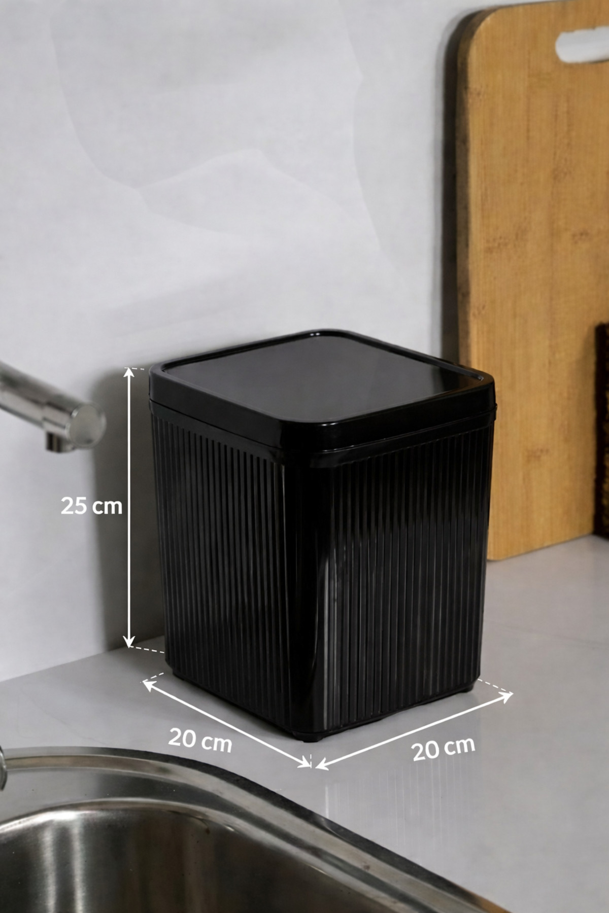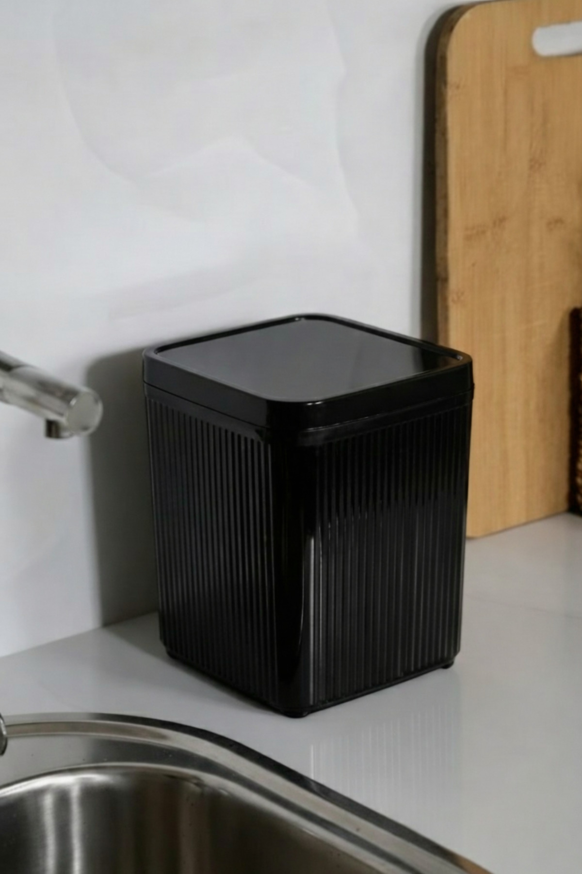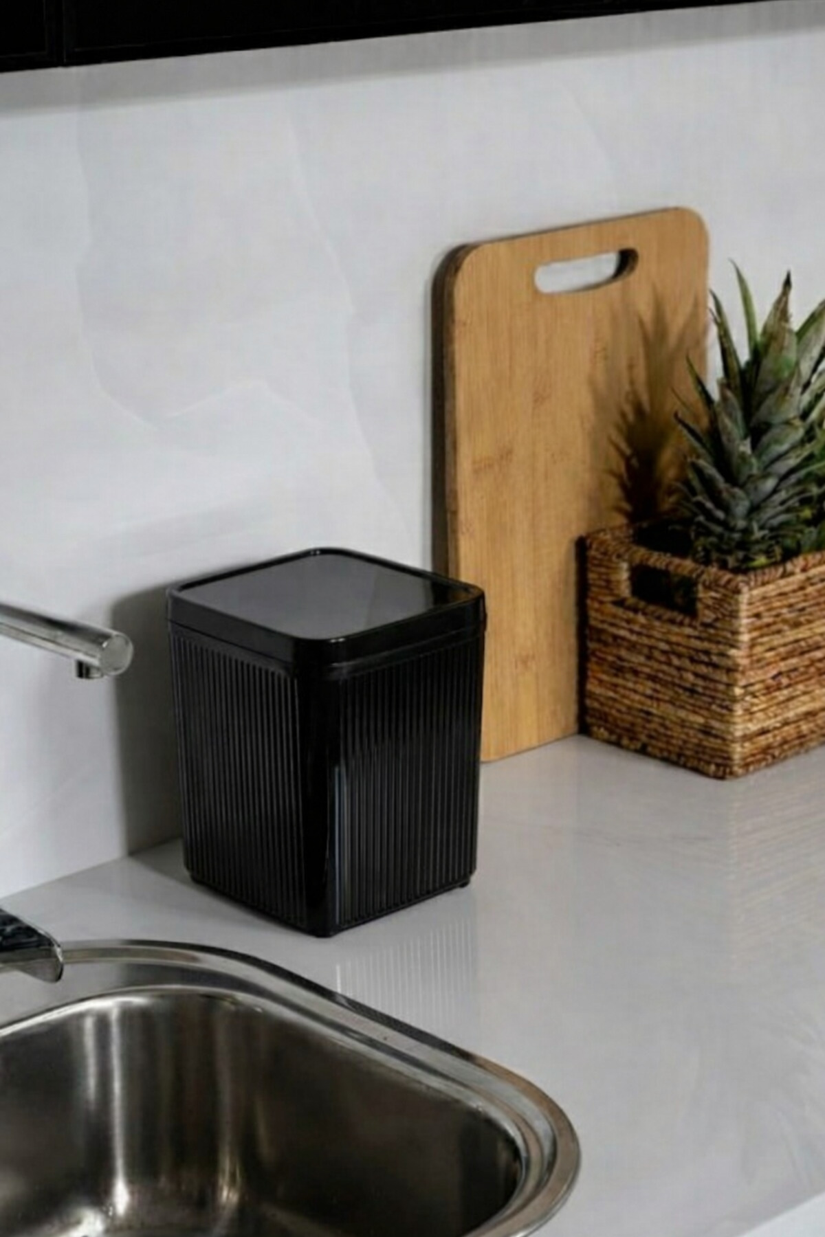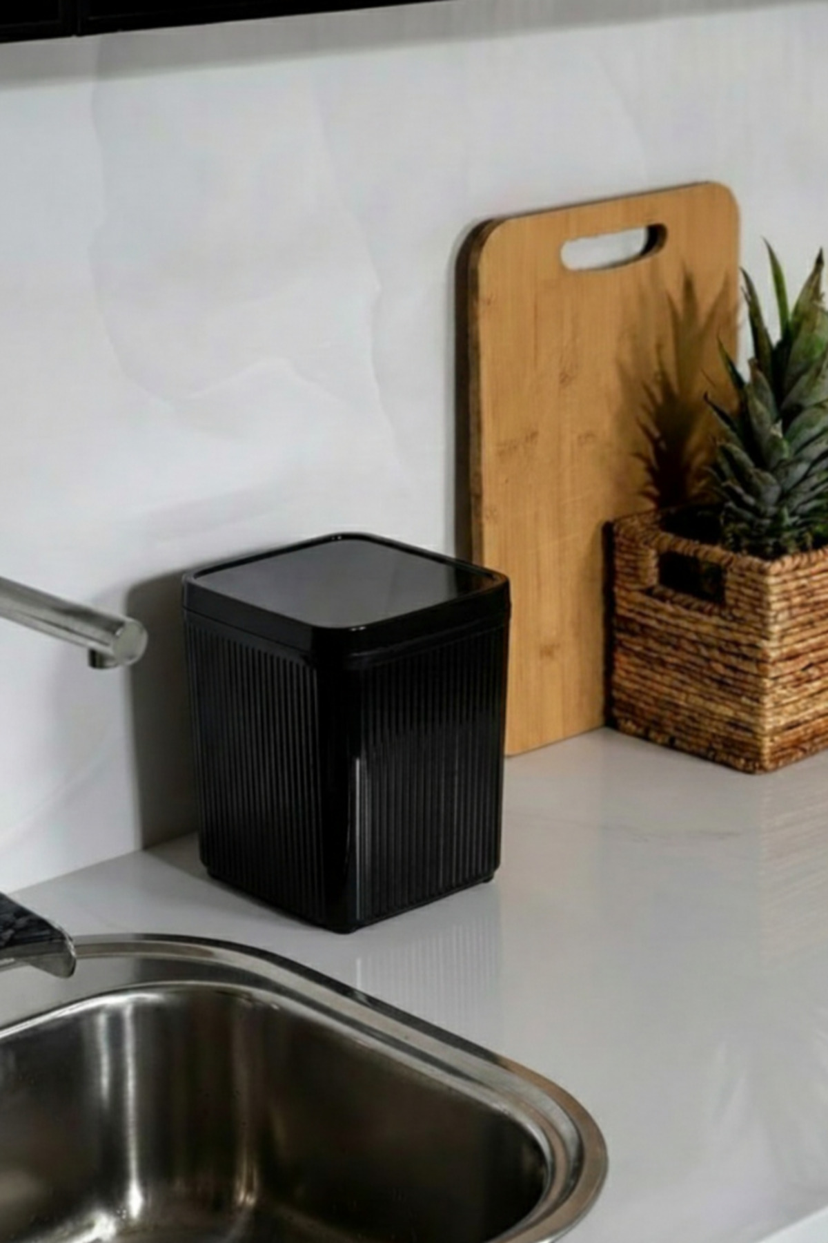 Lines Lüks Çizgili Tezgah Üstü Mutfak Çöp Kovası - Siyah Kapaklı Atık Kutusu 5 Litre 3068 Lines Lüks Çizgili Tezgah Üstü Mutfak Çöp Kovası - Siyah Kapaklı Atık Kutusu 5 Litre 3068 PRA-1704113-1290