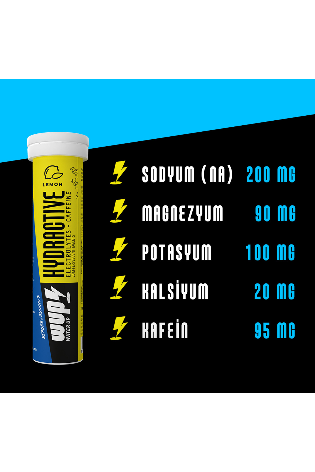 WUP Hydractive Elektrolit, Kafeinli Limonlu 10x20 Efervesan Tablet WUP Hydractive Elektrolit, Kafeinli Limonlu 10x20 Efervesan Tablet dop14261966igo تک سایز