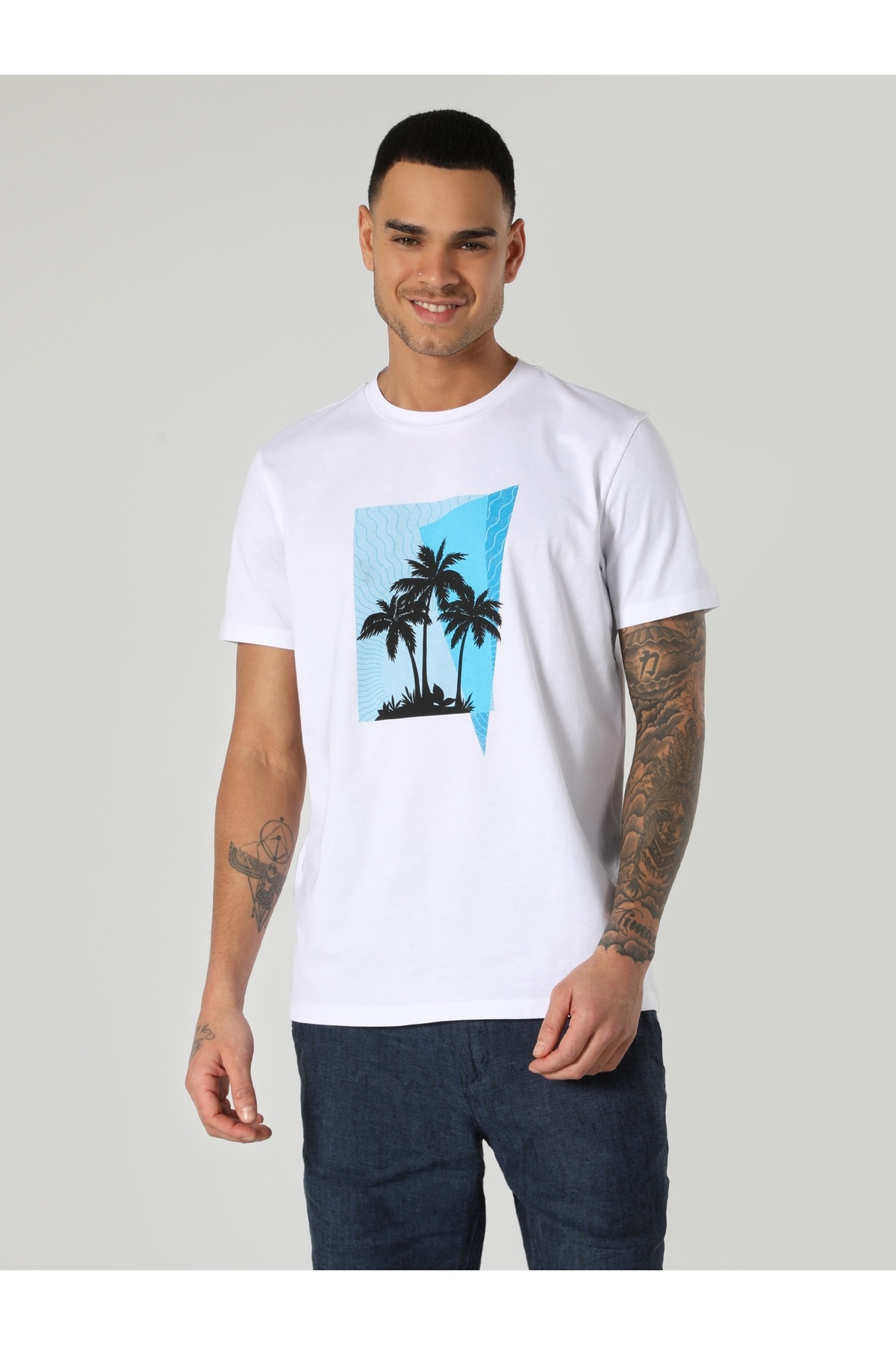 Regular Fit Yuvarlak Yaka Baskılı Erkek Beyaz Kısa Kol Tişört Regular Fit Yuvarlak Yaka Baskılı Erkek Beyaz Kısa Kol Tişört .CL1062700_Q1.V1_WHT 2XL