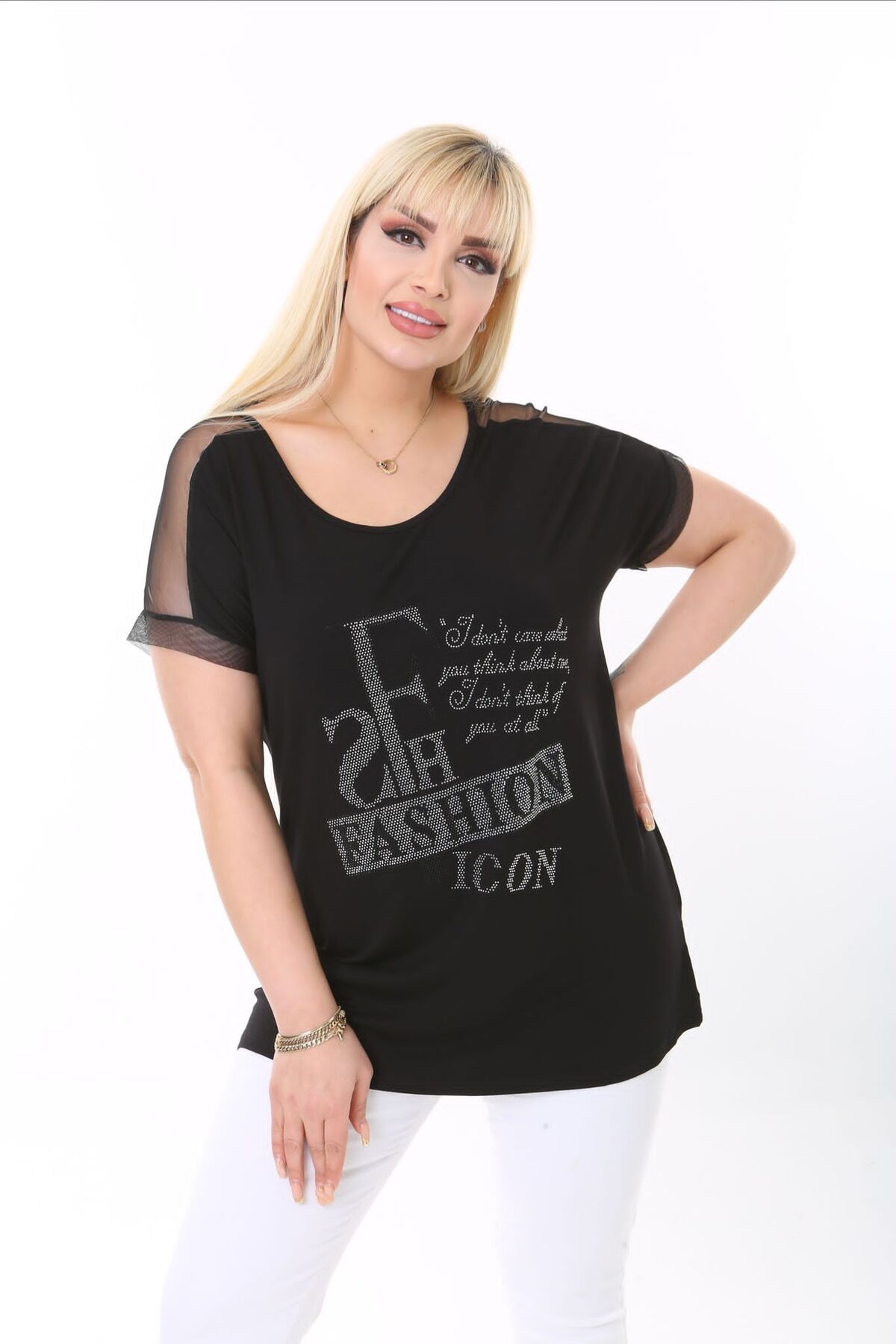 BUTİK AYSEBA KADIN SİYAH TAŞLI BÜYÜK BEDEN T-SHİRT BUTİK AYSEBA KADIN SİYAH TAŞLI BÜYÜK BEDEN T-SHİRT MD3733 50