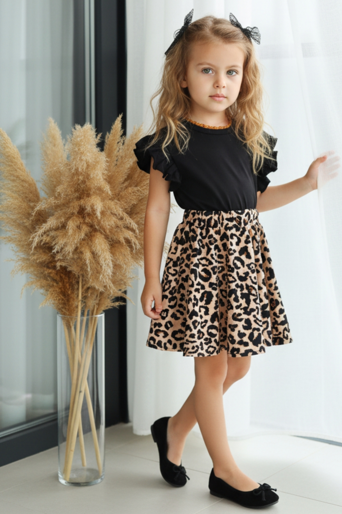 Kız Çocuk Leopar Desenli Uzun Kollu Fırfırlı Elbise Bandana Takım Kız Çocuk Leopar Desenli Uzun Kollu Fırfırlı Elbise Bandana Takım ELB-0059 9-10 Yaş