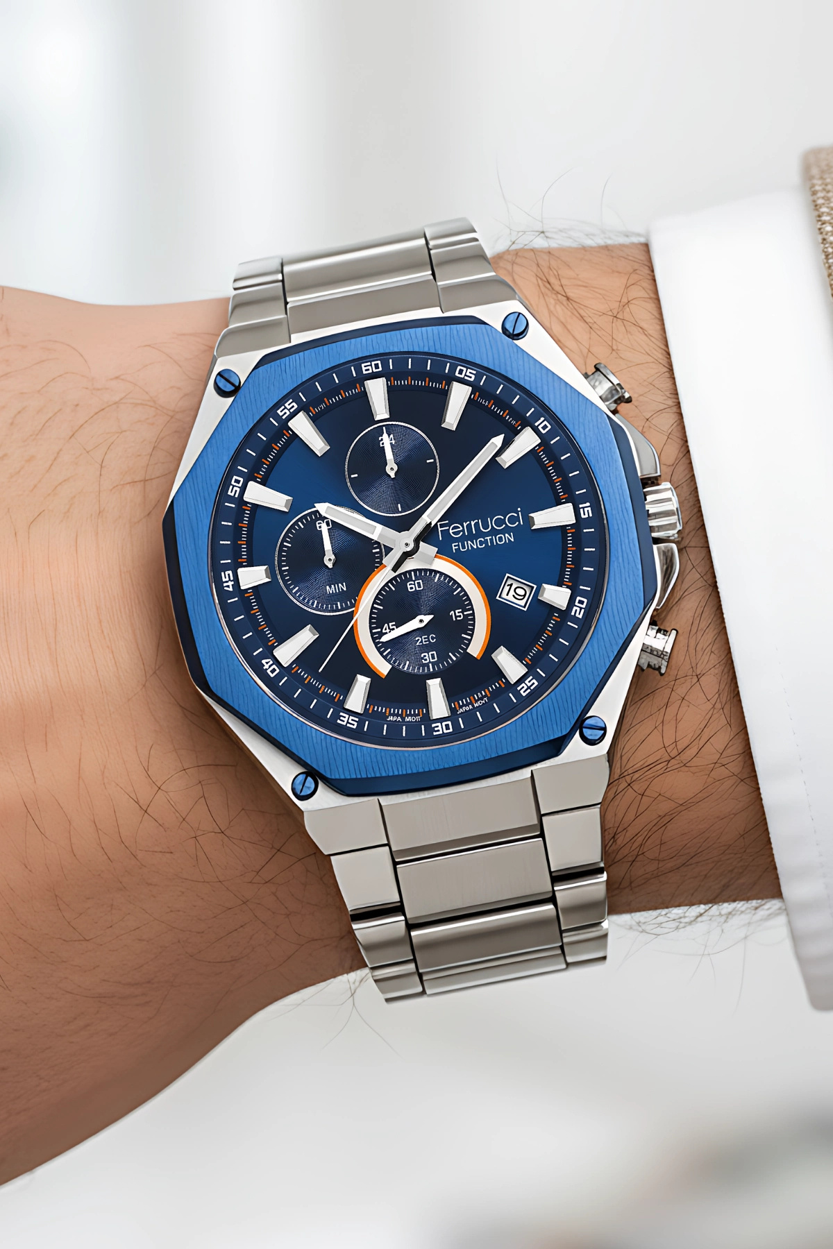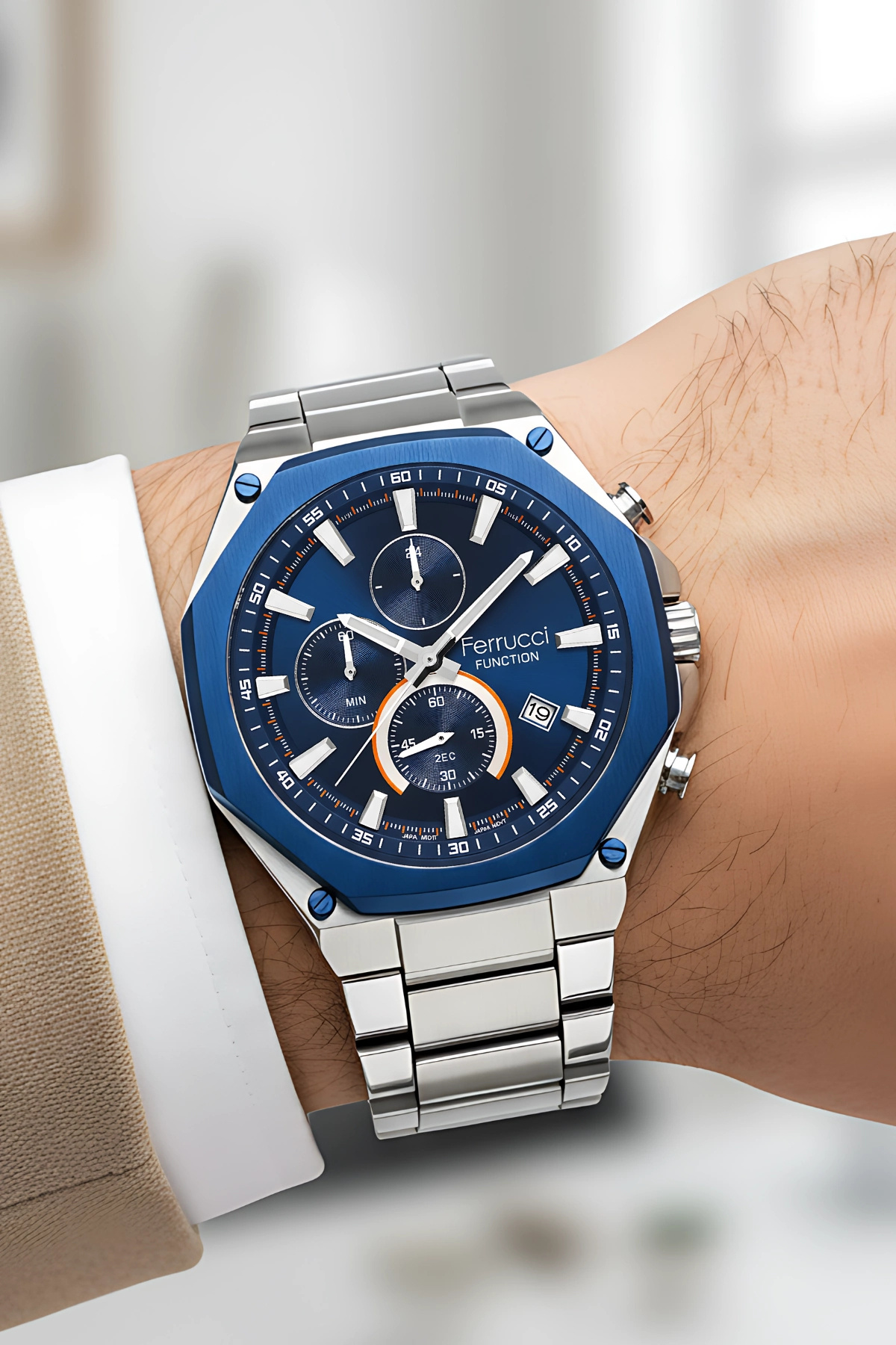 Function Mavi Renk Kasa ve Gümüş Renk Çelik Kordonlu Erkek Kol Saati zmfer063 Function Mavi Renk Kasa ve Gümüş Renk Çelik Kordonlu Erkek Kol Saati zmfer063 تک سایز
