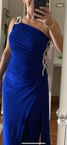 Kadın Saks Tek Omuzlu Taşlı Uzun Abiye Elbise Kadın Saks Tek Omuzlu Taşlı Uzun Abiye Elbise 23Y695109 42