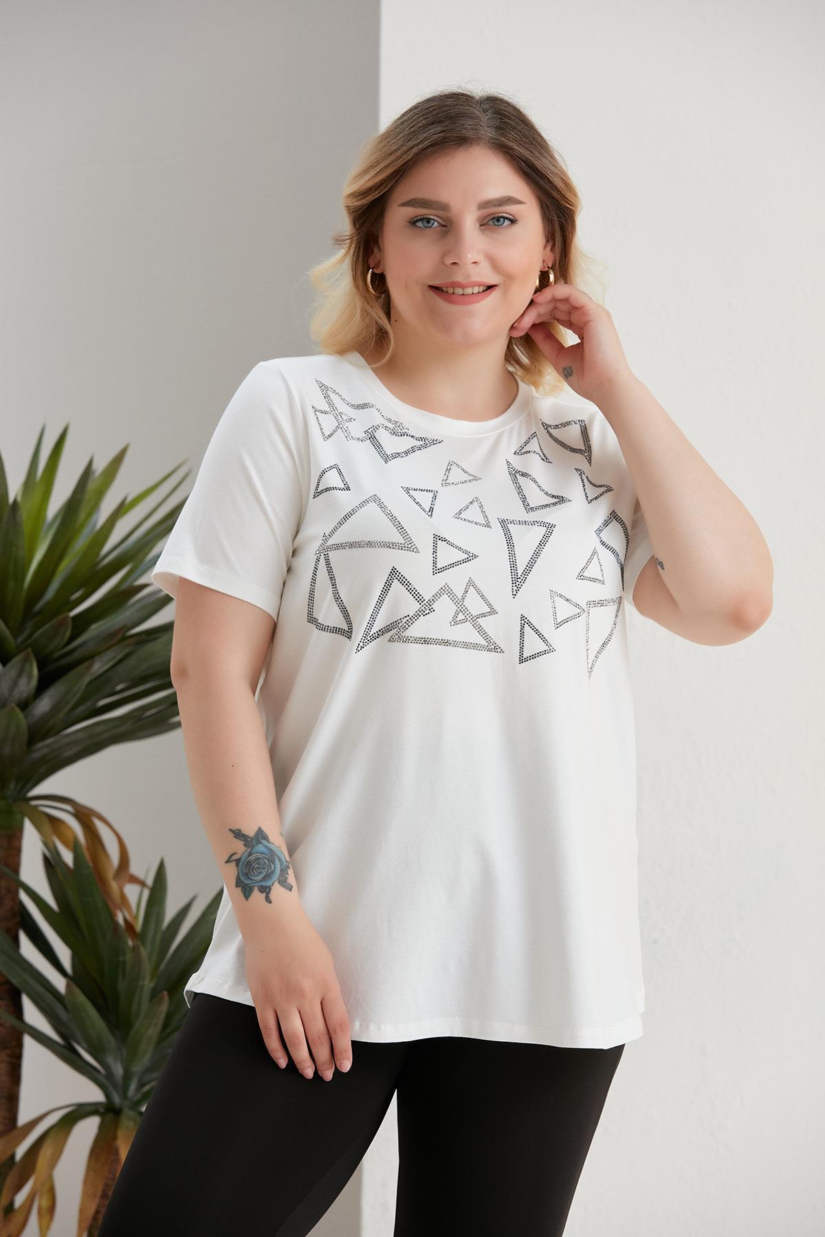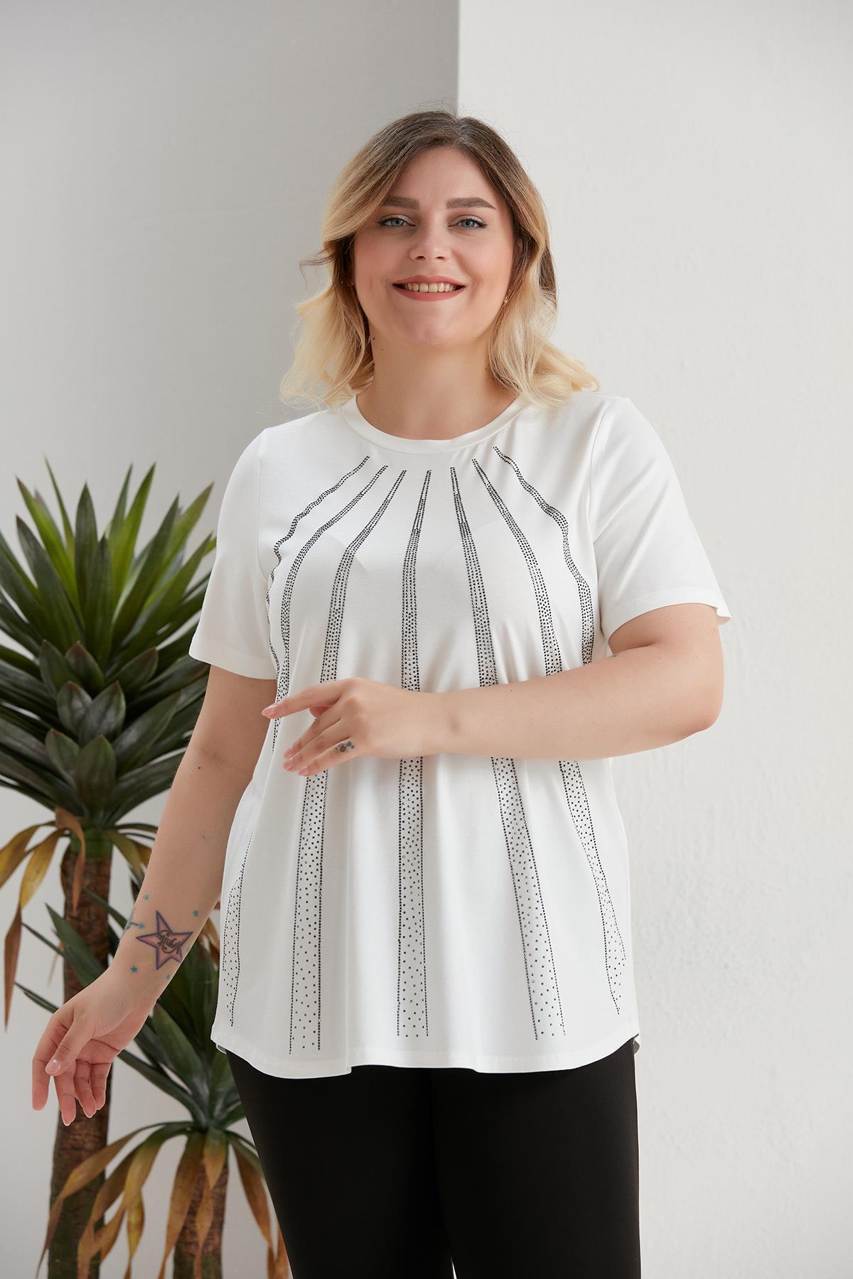 Büyük Beden Verev Taş Detaylı Ekru Bluz Büyük Beden Verev Taş Detaylı Ekru Bluz 20053 48