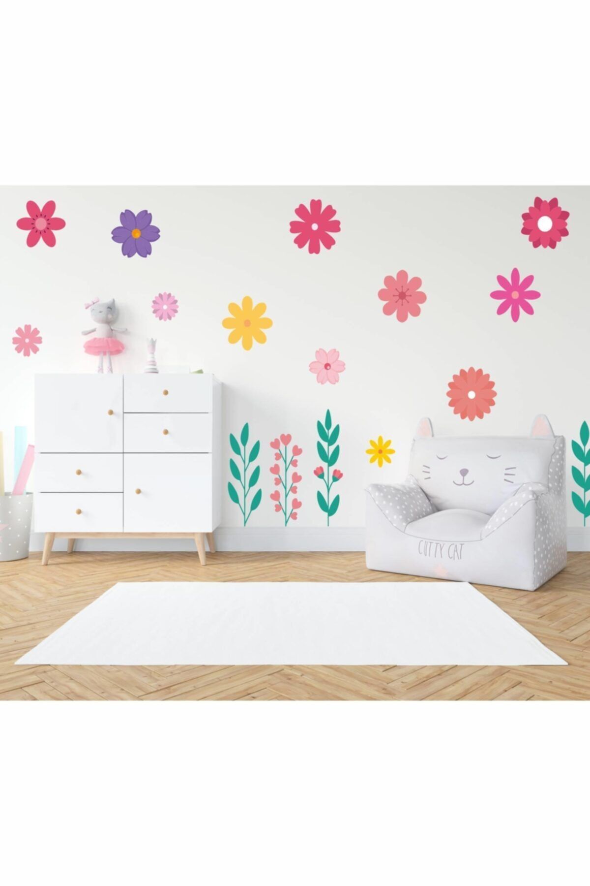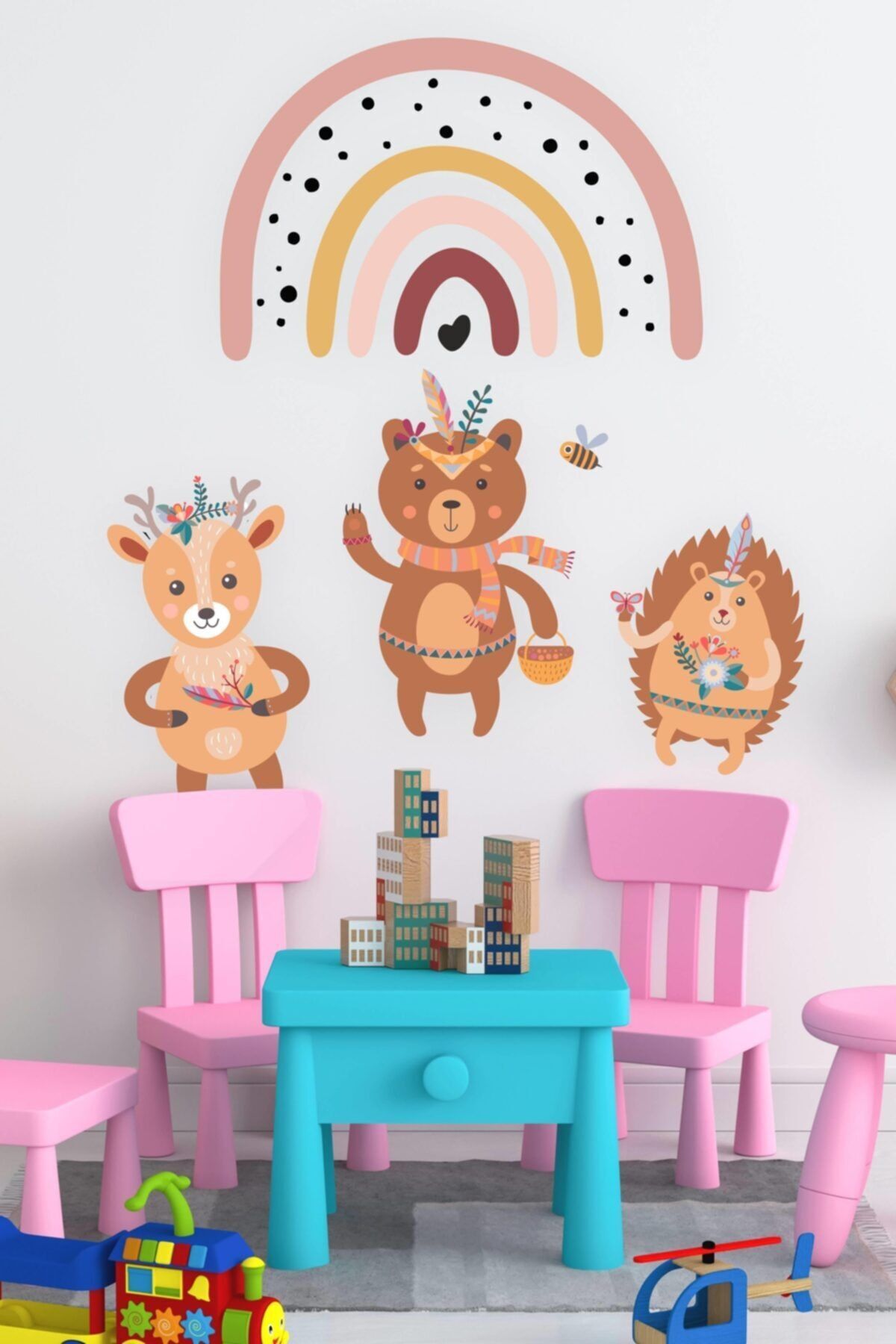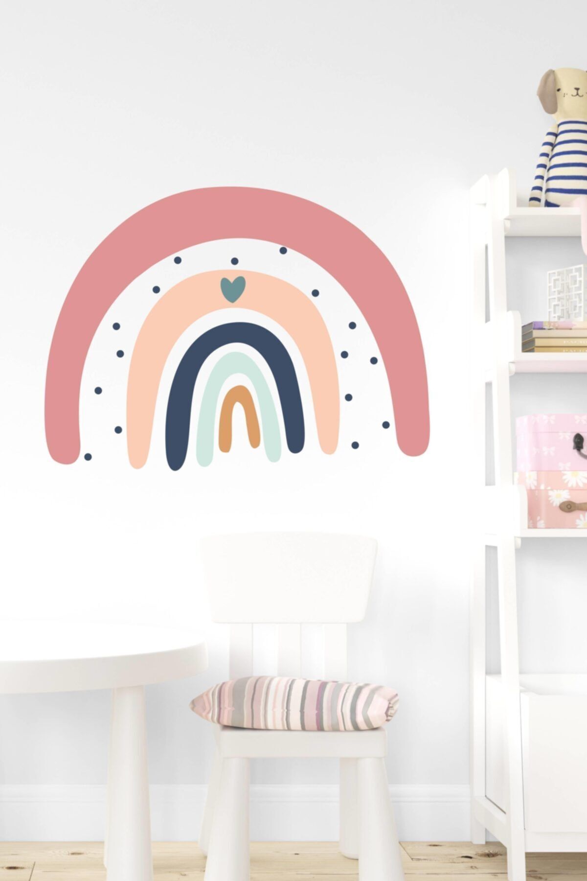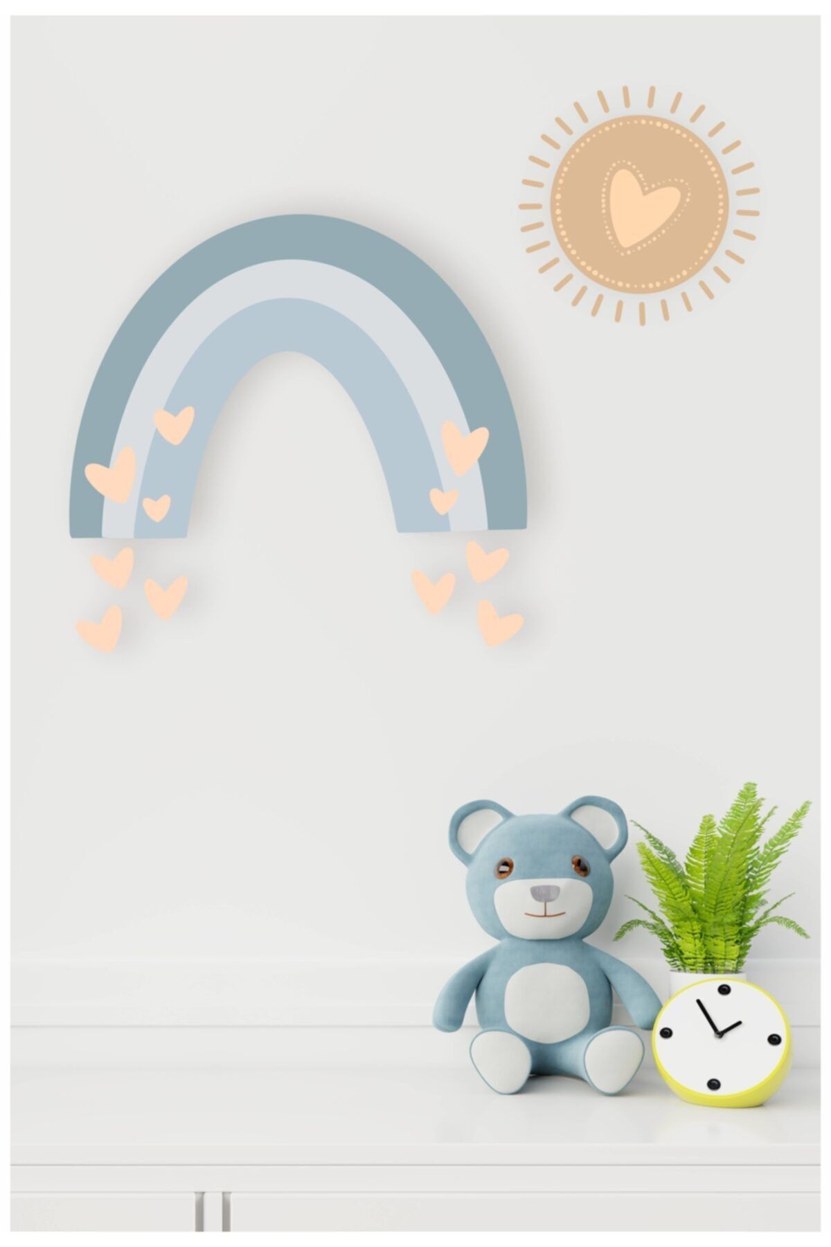 Bulutlu Gökkuşağı Ve Puantiyeler Çocuk Bebek Odası Duvar Sticker Seti