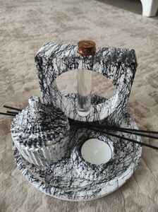 Mermer Desen Tasarım Kokulu Soya Mum, Vazo, Tealightlık, Tepsi Ve Siyah Bambu Çubuklu Oda Kokusu Mermer Desen Tasarım Kokulu Soya Mum, Vazo, Tealightlık, Tepsi Ve Siyah Bambu Çubuklu Oda Kokusu Oda Kokusu Seti تک سایز